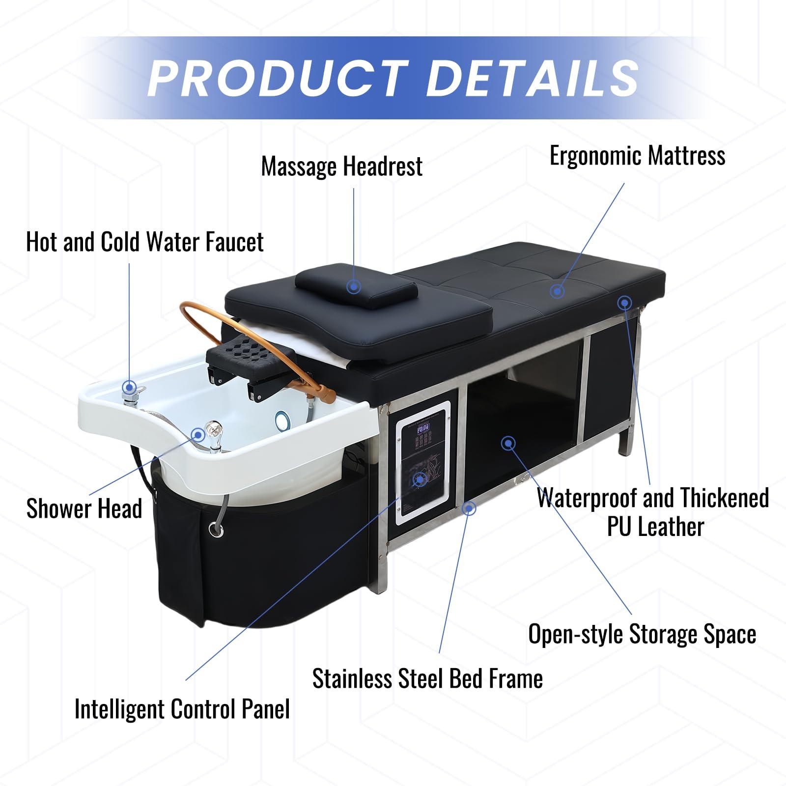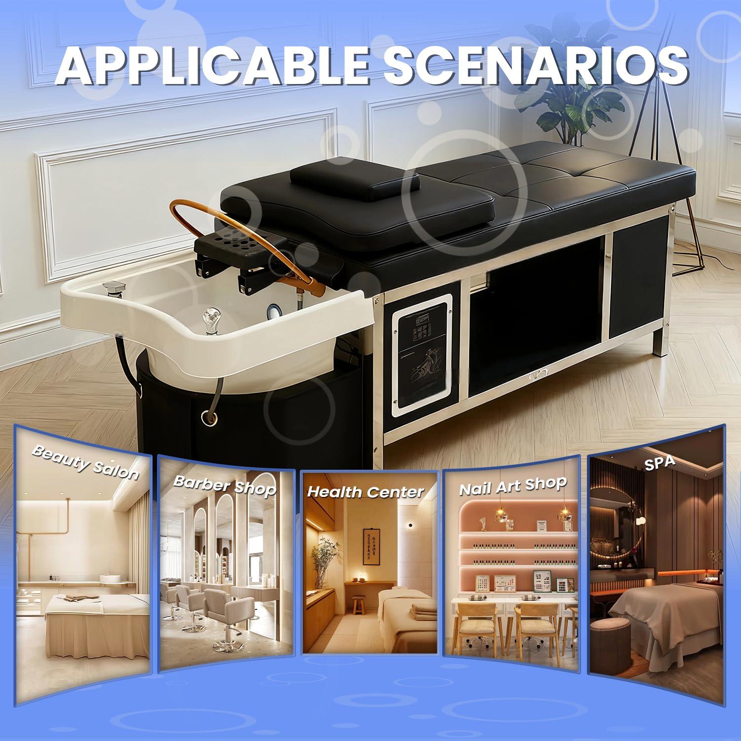 - The Japanese Shampoo Head Spa Bed is Versatile: The head spa equipment plumbed is perfect for beauty salons, massage parlors, barber shops, and luxury spas, making it easy to enhance the customer experience by providing quality massage services. its design transcends commercial spaces and is perfect for home use, turning into a personal oasis of relaxation and rejuvenation.