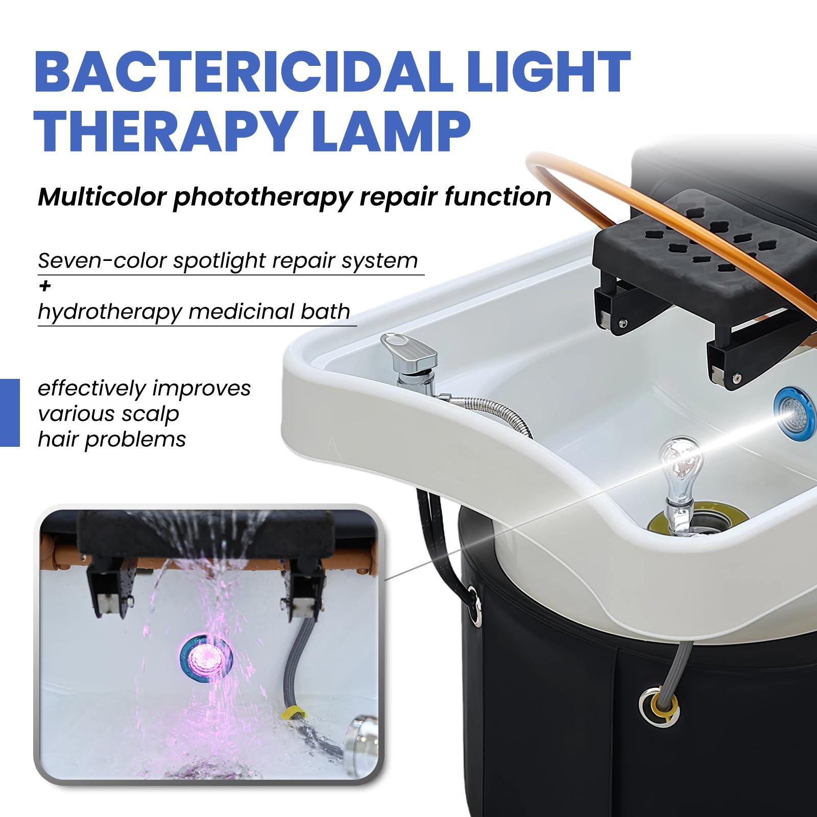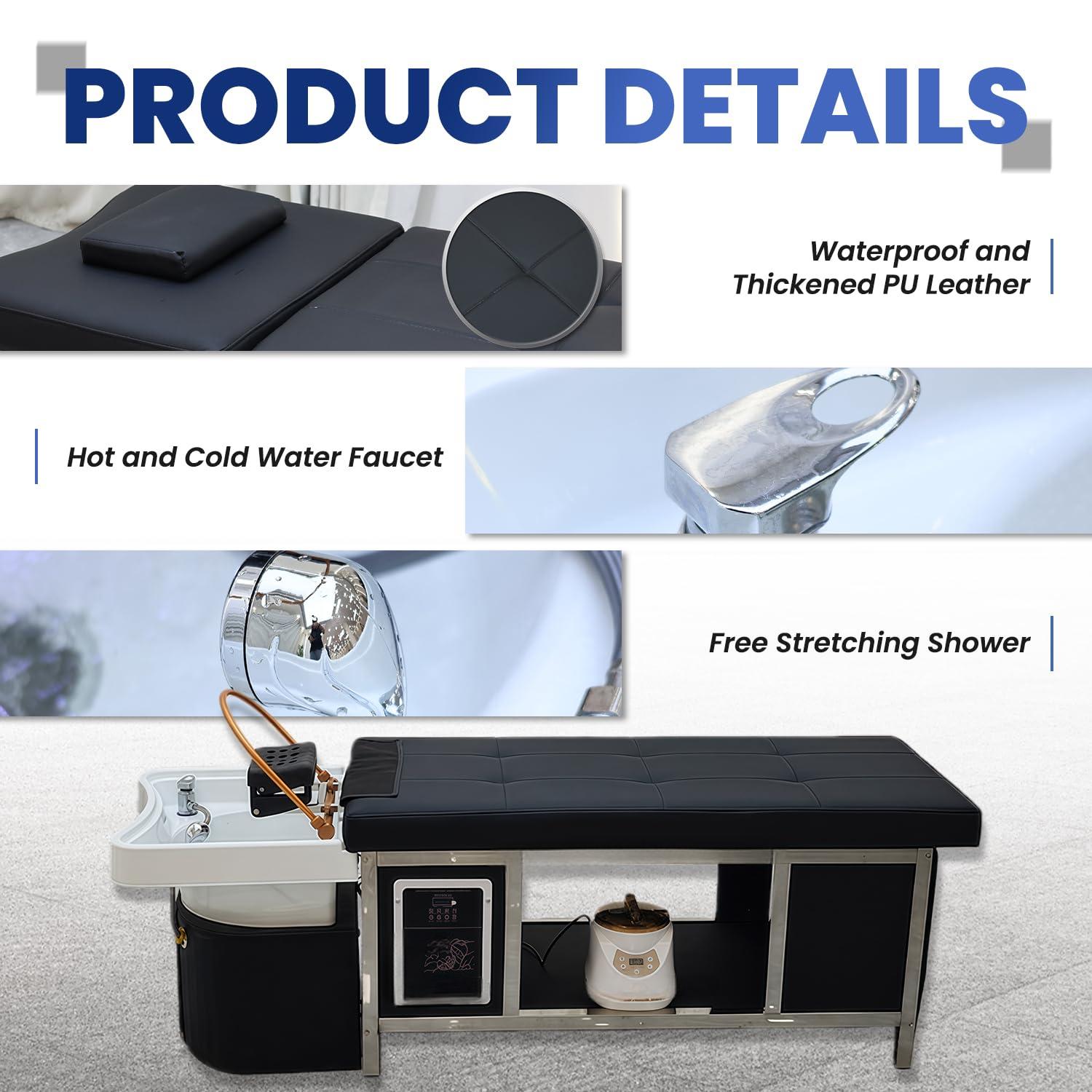 - Stationary Massage Headspa Table with Water Circulation Waterfall: This japanese massage shampoo bed with acrylic shampoo basin, head spa bed with sink equipped with U-Shape water massage shampoo backwash unit,the unique water circulation system of the head spa bed massages the scalp through gentle and powerful water flow, effectively promoting blood circulation in the head, allowing guests to enjoy a comfortable spa experience