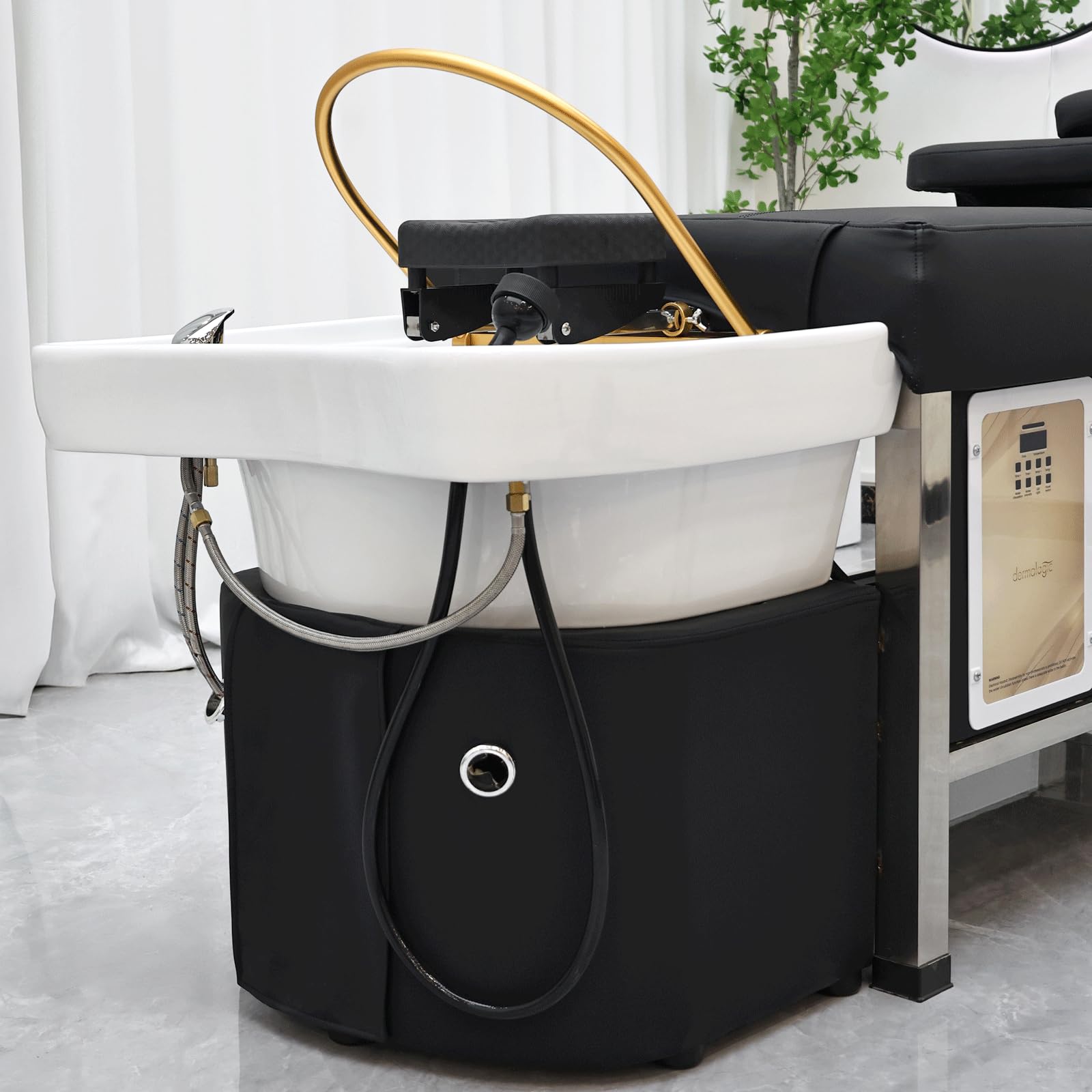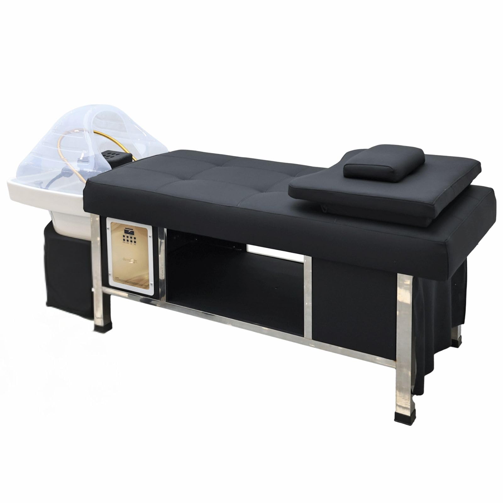 Metro Head Spa Bed, U-Shape Water Massage Shampoo Backwash Unit with Cover Pillow, Spa Resort Hair Salon Equipment, Black