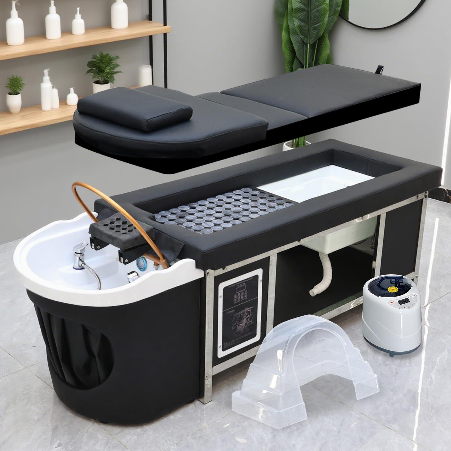 - Head Spa Bed with Foot Bath : This head spa shampoo bed combines shampooing, moxibustion, foot bathing, head massage, steaming, and massage functions, making it an ideal choice for barbershops, spas, and beauty salons to enhance their head/foot care services. Its integrated design significantly elevates the venue and provides customers with a comprehensive head care experience