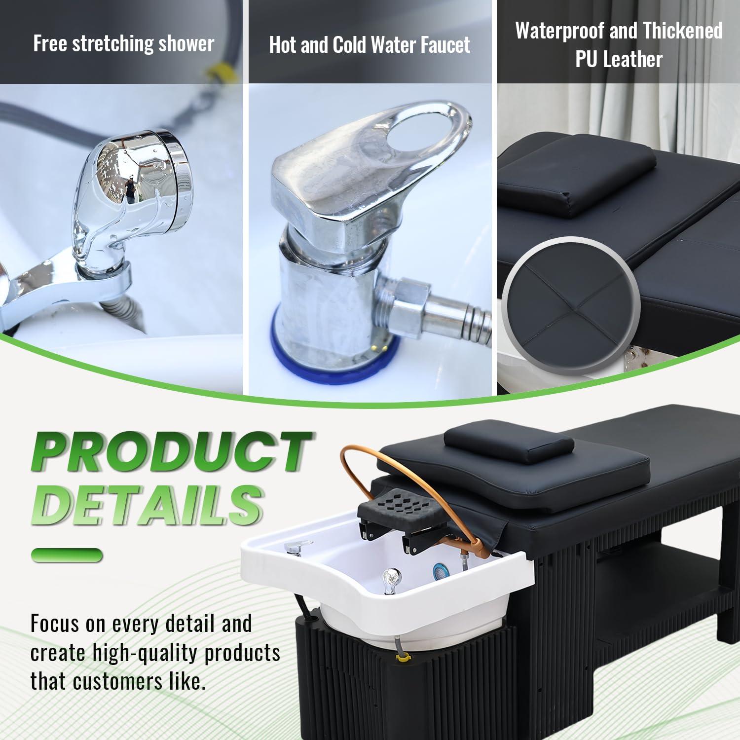 - !Notice: Our hair washing and japanese head spa equipment include diverse functions : plastic frame head spa equipment, stainless steel frame head spa bed plumbed, stainless steel frame head spa bed with foot bath, stainless steel frame head spa equipment with foot bath and moxibustion function. You can choose according to your needs
