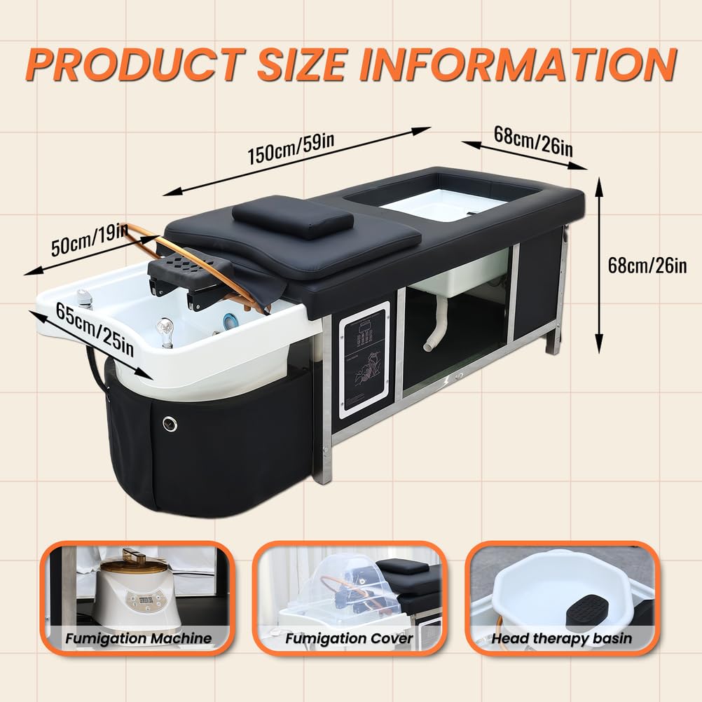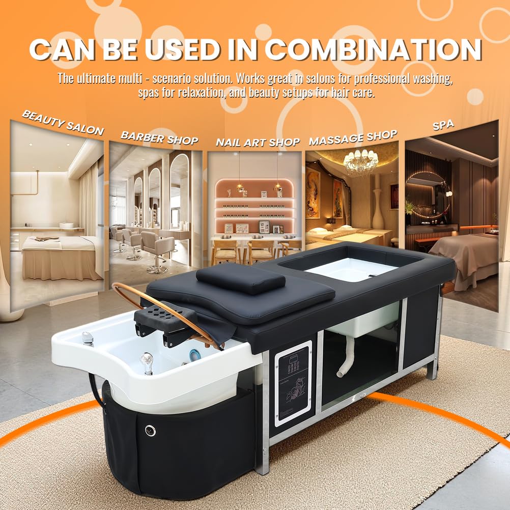 - Multifunctional Beauty Bed: The shampooing bed with a footbath allows for simultaneous head and foot treatments, minimizing time and space. It is ideal for hair salons and wellness centers.