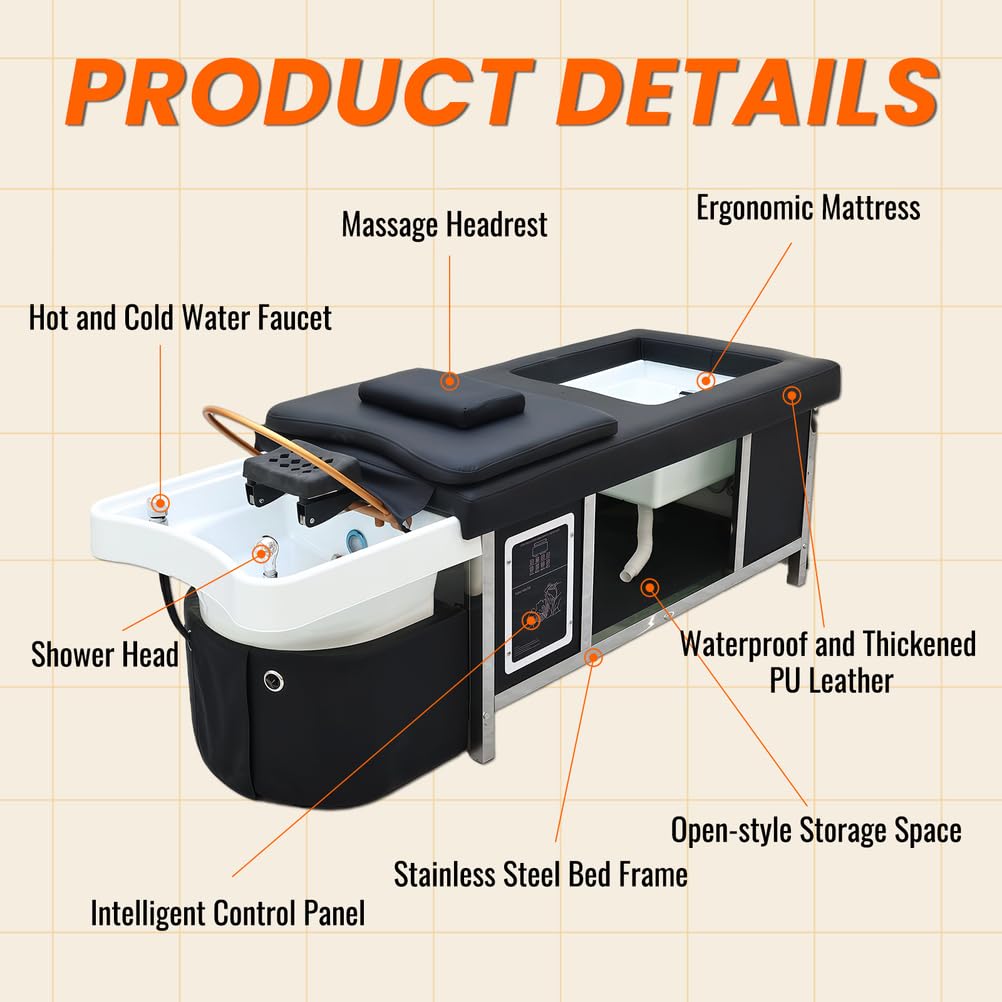 - Shampooing Bed with Footbath: Guests can relax on a comfortable PU leather and high-density foam mattress, enjoying a head spa and a foot bath to relieve fatigue. This is ideal for hair salons and wellness centers.