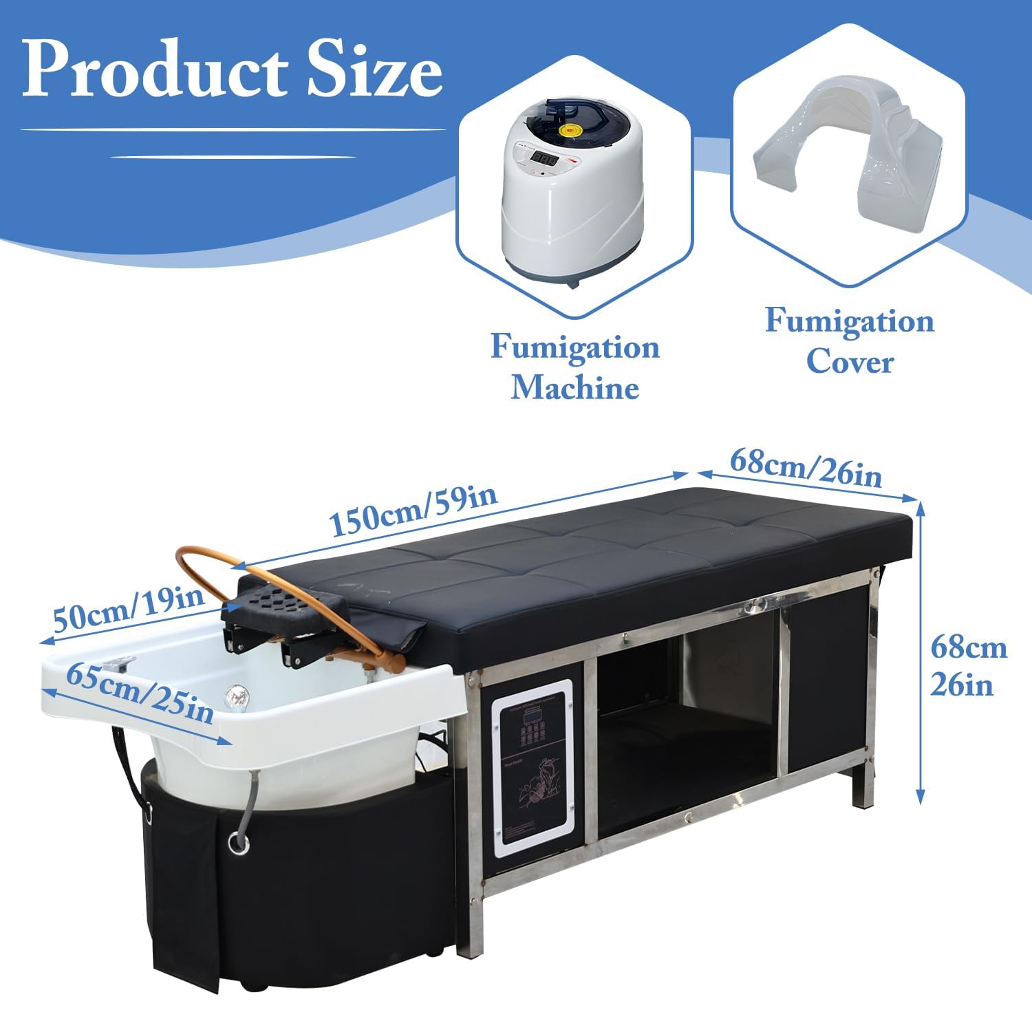 - Japanese Head Massage Table:This is a fully automatic intelligent shampoo bed, an extra-large 200x68x68cm head spa bed that can be used by all kinds of people to comfortably lie on the bed and enjoy massage services. It includes intelligent shampooing function, head light therapy function, water circulation system, and massage headrest. Due to the large size of the package, it was divided into two packages for delivery. If there are any problems, please communicate with the buyer in time