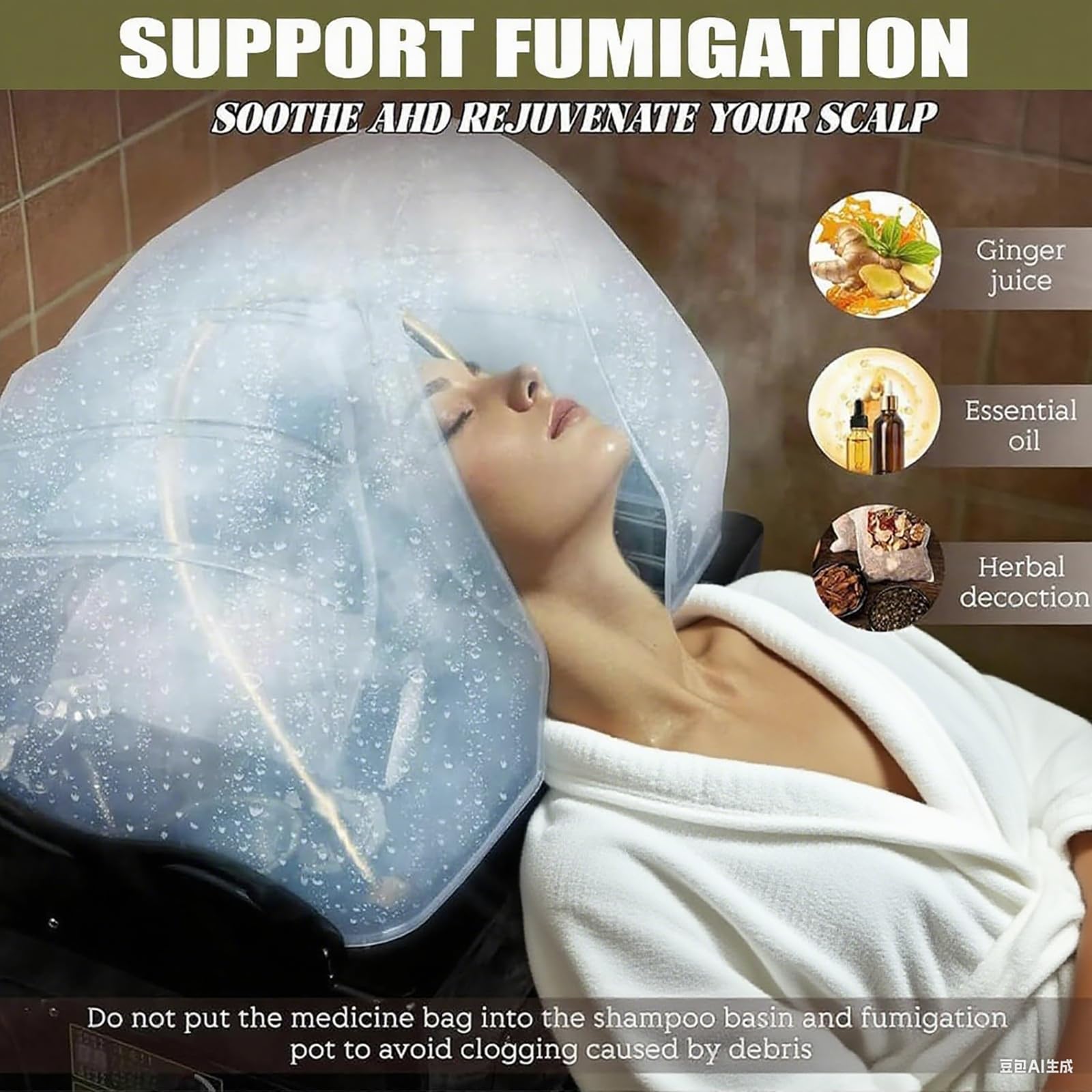 - 【Steam therapy】The head spa device is equipped with a three-piece steam set, including a spa pool, a steam engine and a fumigation hood. Adding a fumigation process during hair washing can effectively eliminate fatigue, improve sleep quality and promote blood circulation to the head.