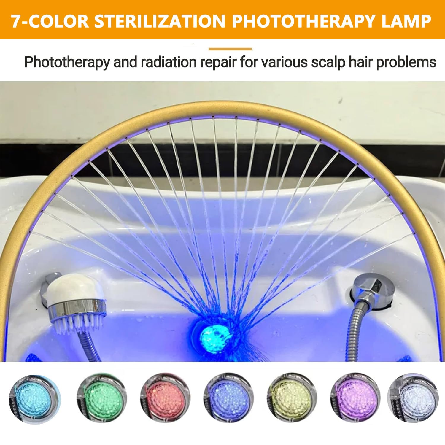 - 4️⃣ 【7-Color LED Chromotherapy – Enhanced Scalp Wellness】Stimulate scalp vitality and promote hair wellness with 7-color LED light therapy. Combined with botanical conditioners or spa serums, it deep cleanses, nourishes, and revitalizes the scalp. Ideal for organic treatments, aromatherapy, and high-end salon experiences.