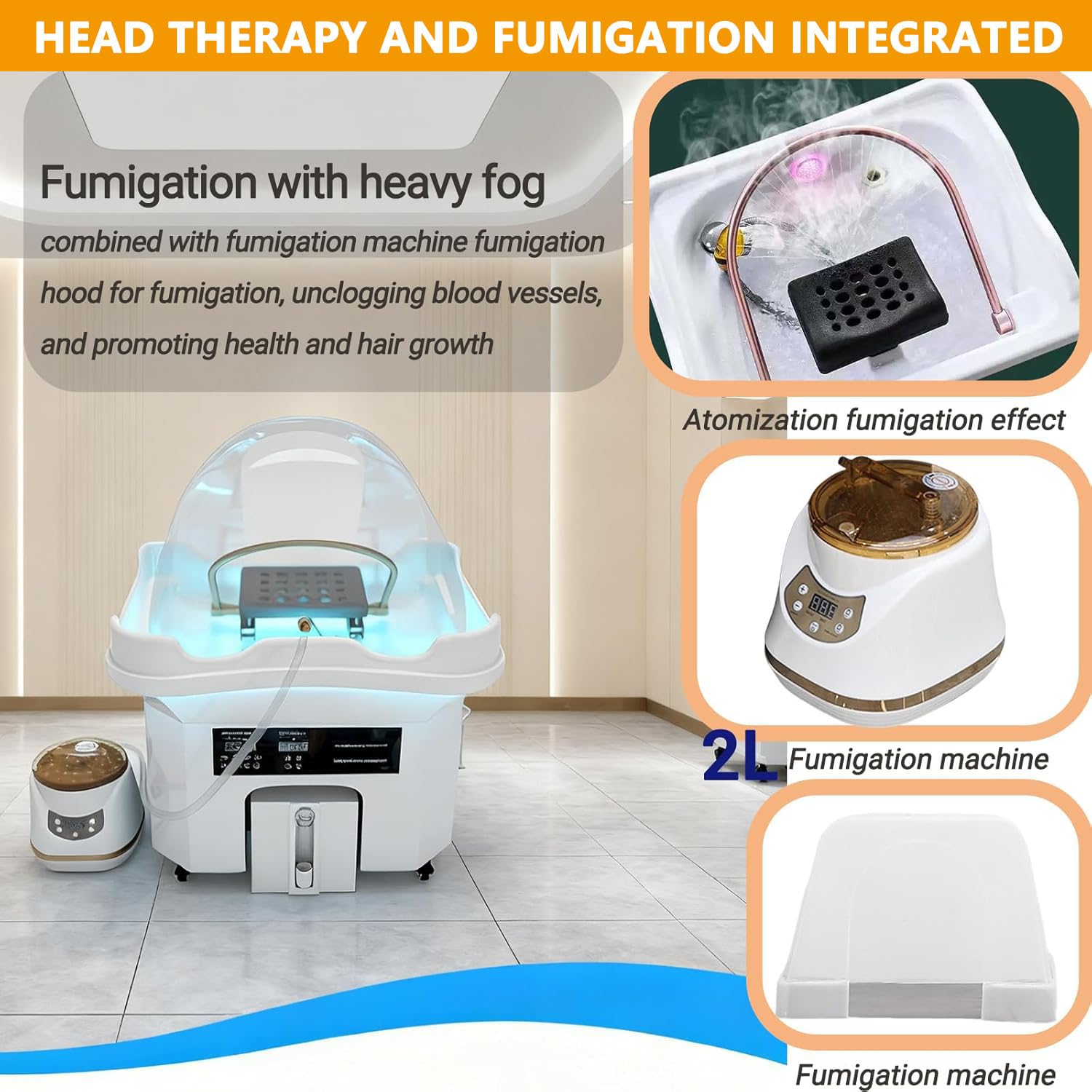 - 5️⃣ 【All-in-One, Multi-Functional Salon Solution】From keratin treatments to scalp detox rituals, this upgraded head spa machine integrates shampooing, steaming, fumigation, and LED light therapy into one compact, elegant unit. The new 20L internal waste tank ensures effortless drainage, unlike older models requiring extra buckets. Perfect for salons, home spas, and mobile styling professionals seeking hygiene, efficiency, and luxury.