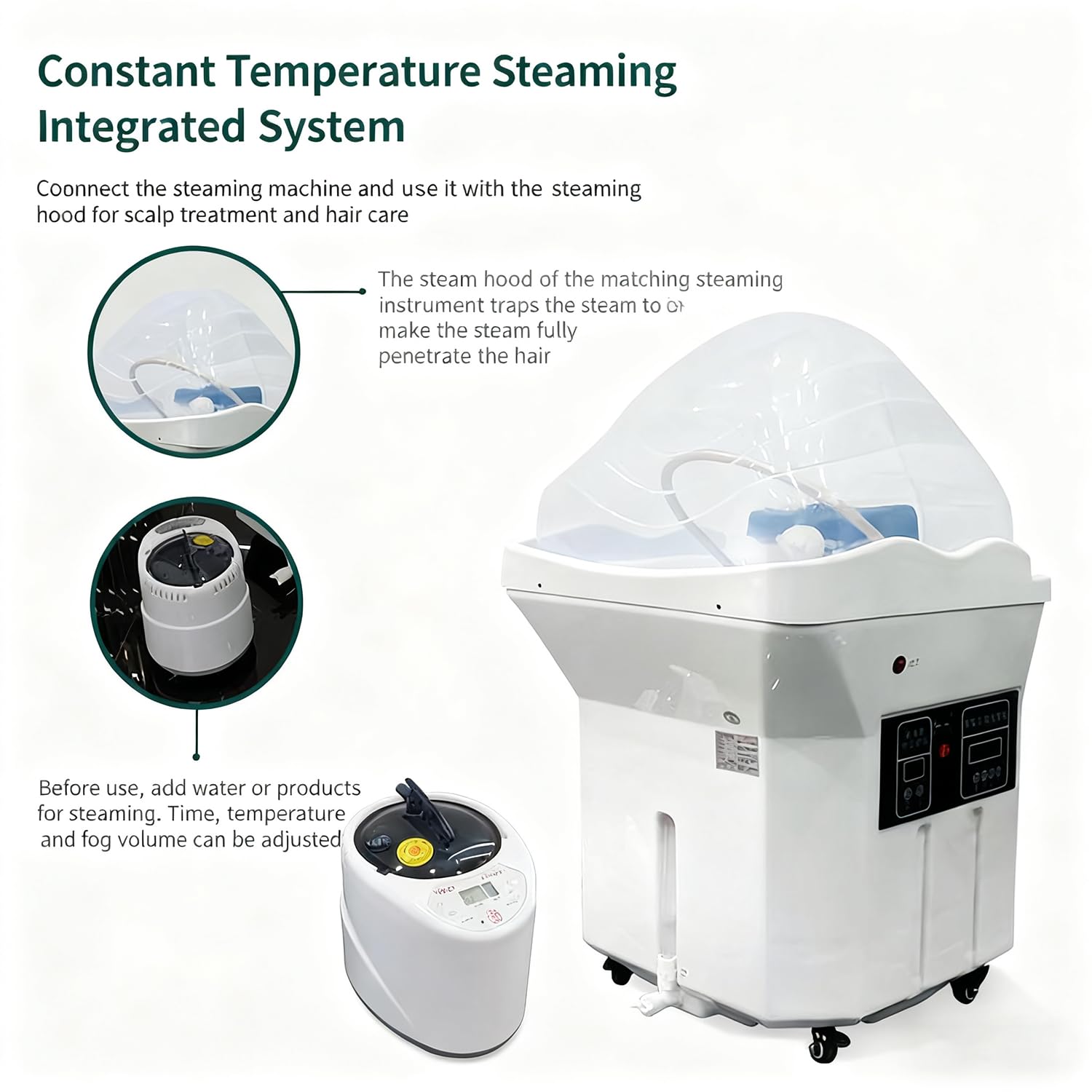 - 【Constant temperature water circulation】: The head spa device includes a frame with a waterfall outlet and a nozzle with a massage function, both of which automatically circulate water. The built-in circulator heats the water to the temperature you set (30°C to 55°C).