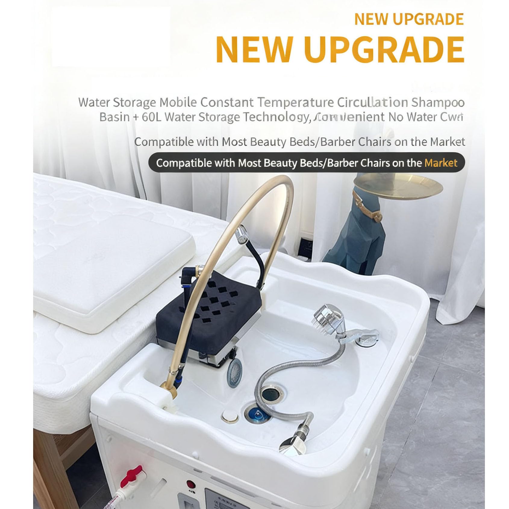 - 【Smart Water Circulation Scalp Care】The device’s water circulation system maintains a constant flow of water in the head basin, accurately directing it to the scalp via a golden ring. The flowing water offers a gentle scalp massage and can be enhanced with essential oils or specialized scalp care solutions.
