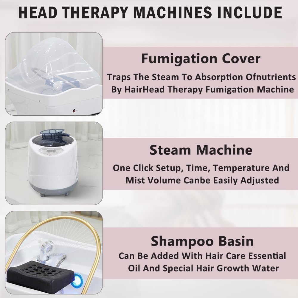 - 【Smart Water Circulation Scalp Care】The device’s water circulation system maintains a constant flow of water in the head basin, accurately directing it to the scalp via a golden ring. The flowing water offers a gentle scalp massage and can be enhanced with essential oils or specialized scalp care solutions.