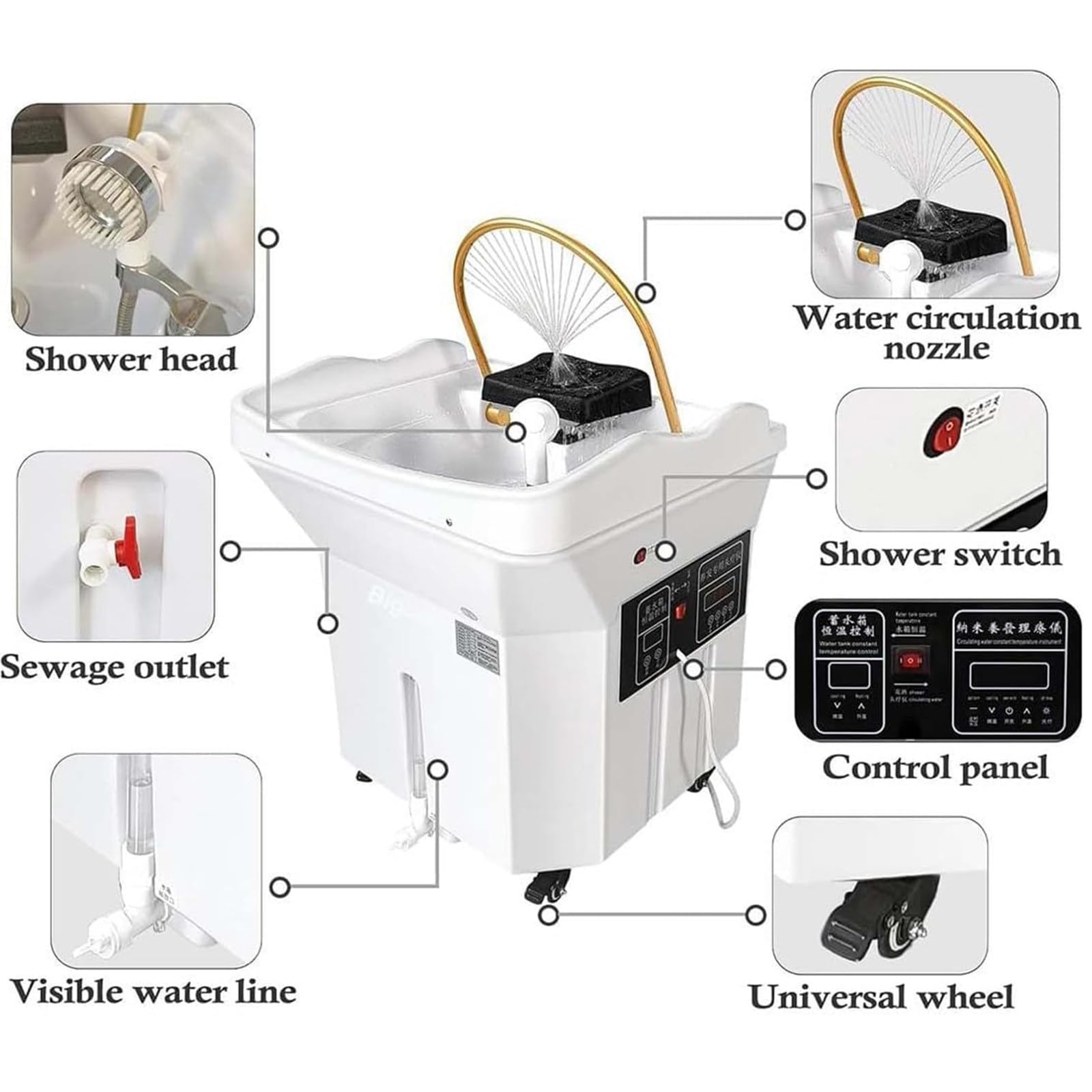 Head Spa Equipment Sink Portable with 60L Water Tank, Thermostatic Japanese Head Spa Equipment Water Circulation Shampoo Basin, Enhance The Head Wash Experience