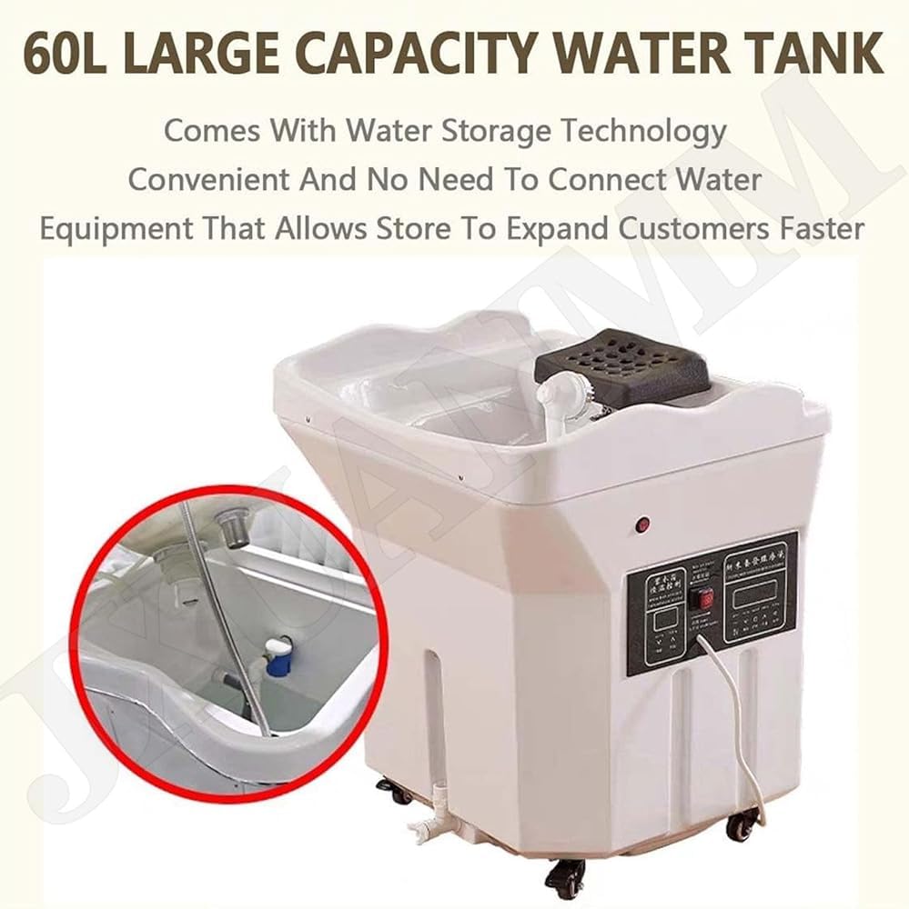 - 60L DUAL HEATING SYSTEM – Maintains optimal water temperature (30°C–45°C) for scalp hydration, steam therapy, or hair treatments, ensuring salon-grade efficiency