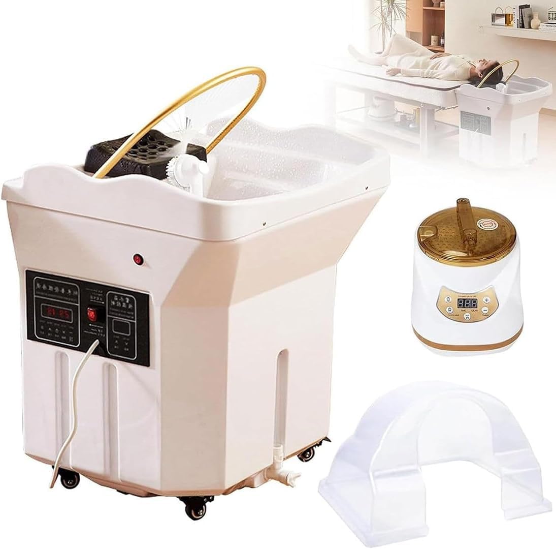 Japanese Head Spa Equipment with 60L Thermostatic Water Basin & Light Therapy – Portable Shampoo Bowl for Fumigation, Hydration, and Relaxation(Color:White)