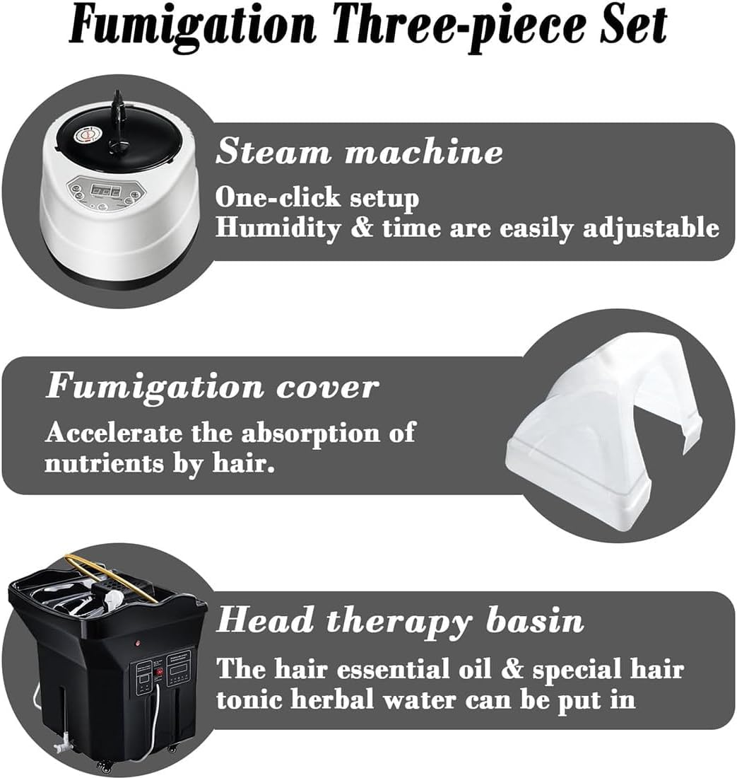 - 60L THERMOSTATIC BASIN – Maintains water temperature between 30°C–45°C for optimal scalp hydration and comfort during hair treatments or facial steaming
