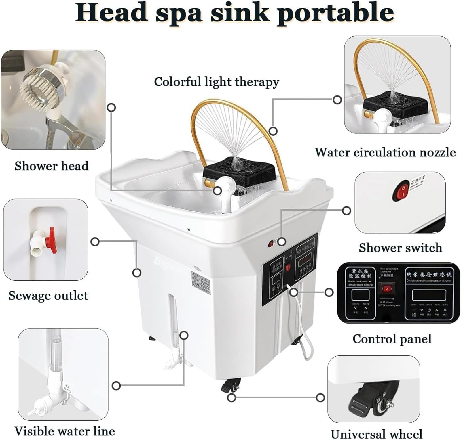 Head Spa Equipment,Water Circulation Shampoo Basin,Japanese Head Spa Equipment,Massage Shampoo Bed,60L Large Water Tank Fumigation Light Therapy Head Care One Stop Solution