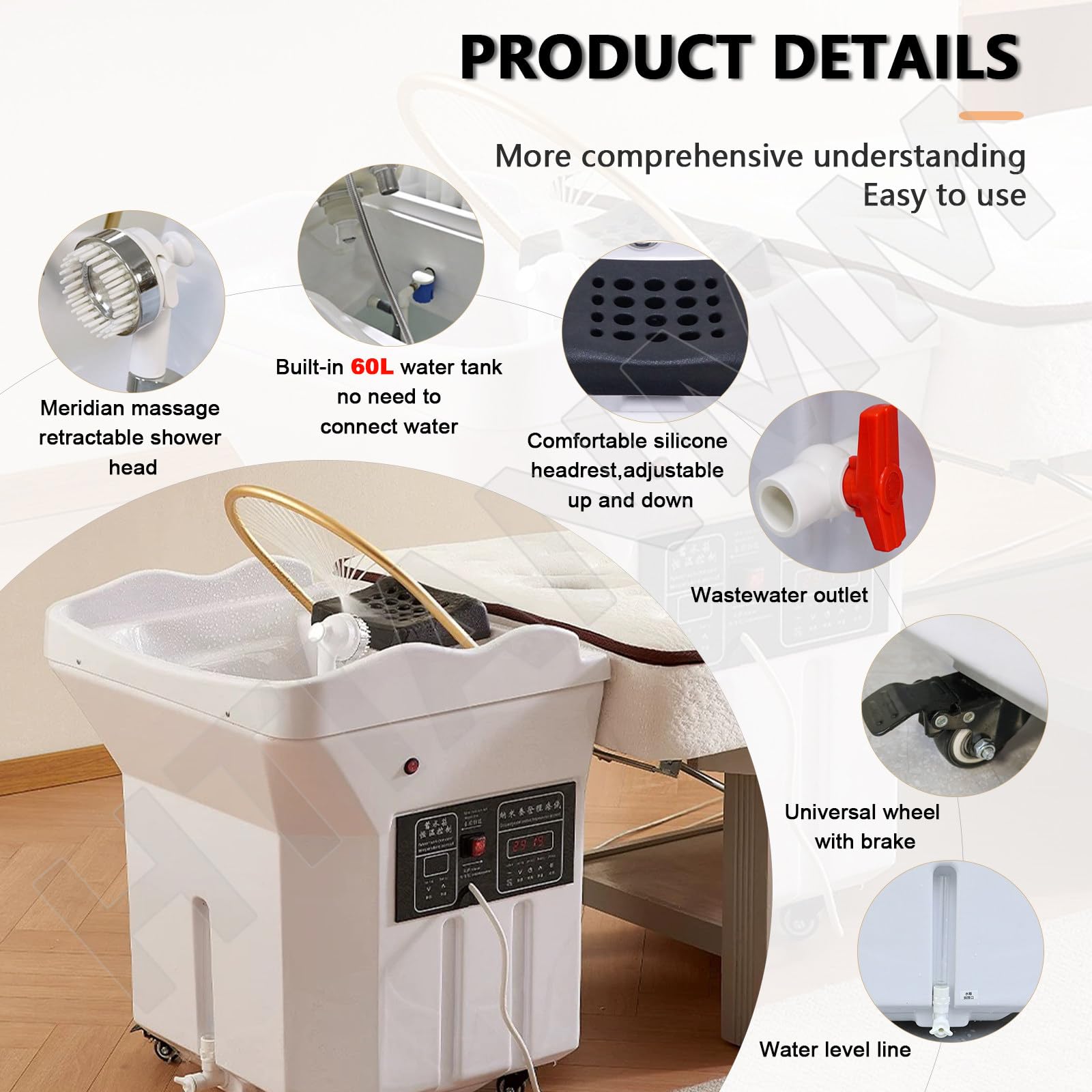 • 【Applicable occasions】: The head spa machine is a professional spa equipment that integrates shampooing, spa, light therapy, and hair care. Suitable for beauty salons, massage parlors, health spas, etc. It is more compatible with shampoo chairs, beauty beds, head care beds, and massage beds with a height of 62-72 cm