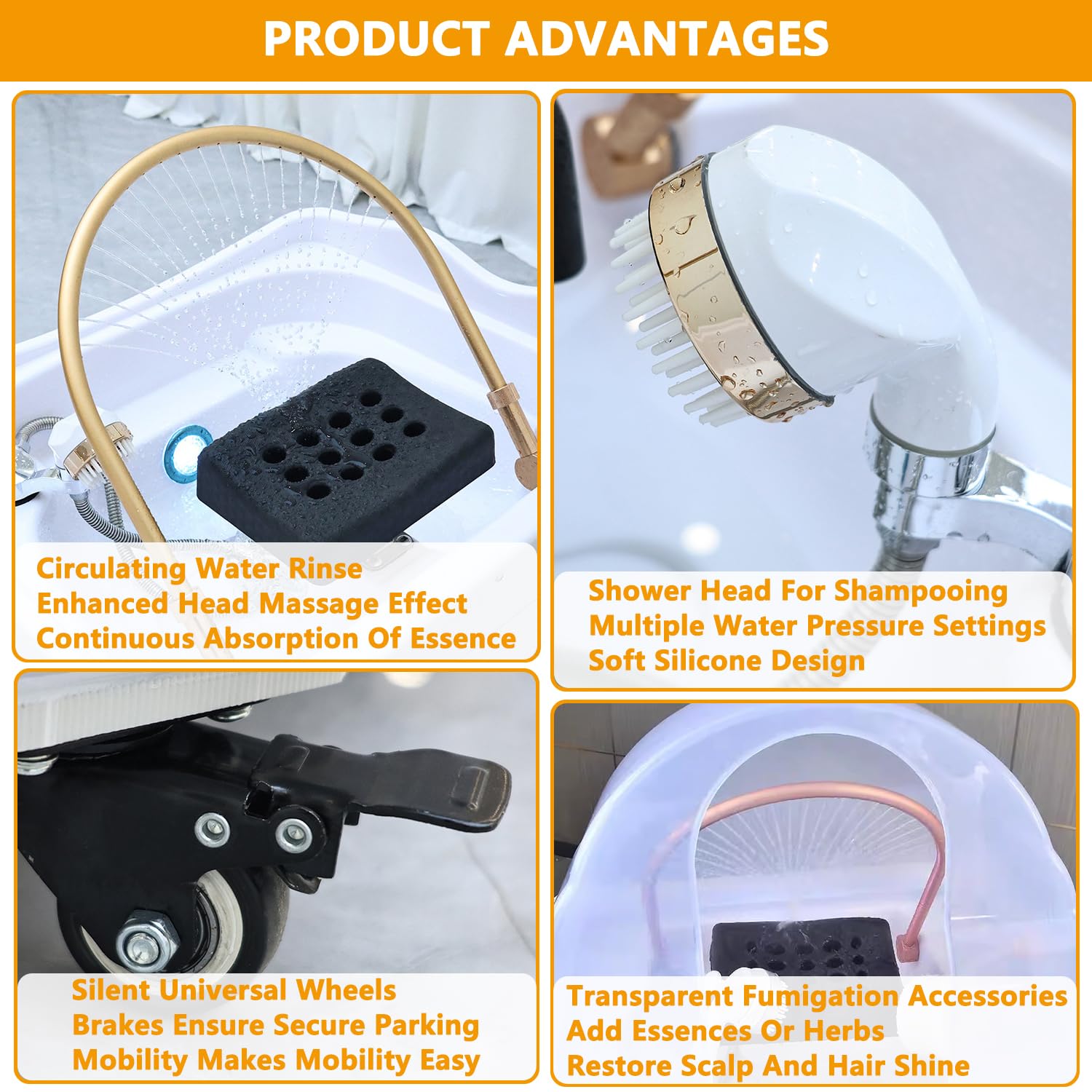 - 1️⃣ 【Pro Mobile Hair Spa Equipment with 60L Water Tank & 20L Waste Tank】Professional mobile Water Circulation Shampoo Basin with a 60L clean water tank and a 20L built-in waste tank — no need for external drainage or extra buckets! Thermostatic circulation (30°C–55°C) ensures comfort. 360° lock wheels fit narrow salons. EU chair compatible (62–72cm). Perfect for home salons & mobile stylists.