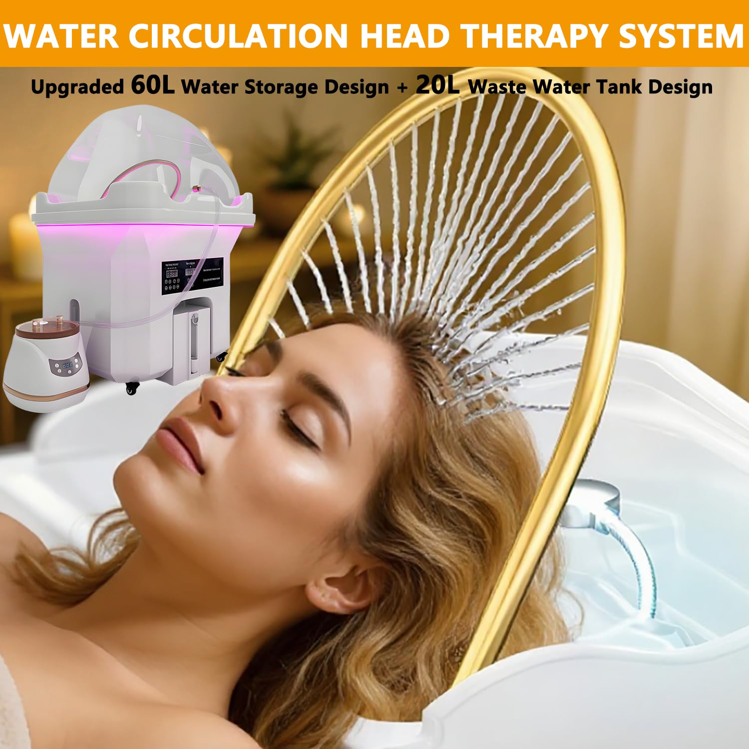 - 1️⃣ 【Pro Mobile Hair Spa Equipment with 60L Water Tank & 20L Waste Tank】Professional mobile Water Circulation Shampoo Basin with a 60L clean water tank and a 20L built-in waste tank — no need for external drainage or extra buckets! Thermostatic circulation (30°C–55°C) ensures comfort. 360° lock wheels fit narrow salons. EU chair compatible (62–72cm). Perfect for home salons & mobile stylists.