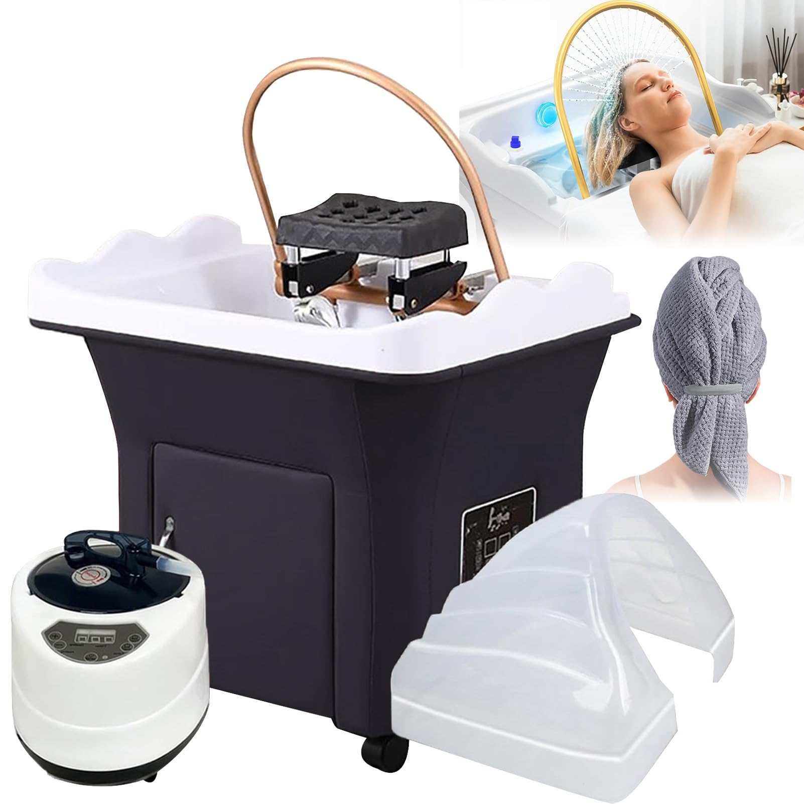- 【AROMATIC FUMIGATION EXPERIENCE】● Use the included fumigation accessories with essential oils and herbs to create a soothing spa experience, allowing the essence to deeply nourish the scalp, making it more comfortable and improving scalp health. Water Circulation Shampoo Basin can also effectively eliminate fatigue, and promote blood circulation in the head.