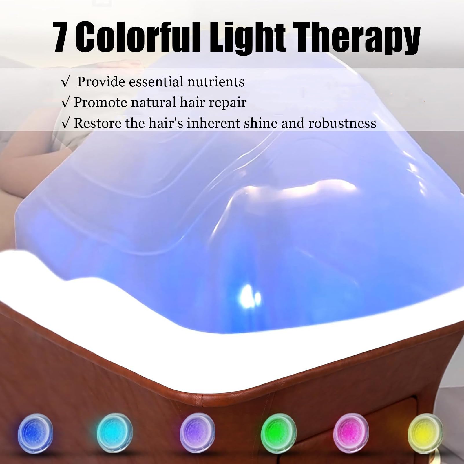 - 【7 COLOR LIGHT THERAPY FUNCTION】● All-in-one shampooer with LED light therapy lamp design, Hair Washing Machine can help repair hair and scalp, empowering hair health strength. Improve scalp flora balance, oil balance, and metabolism balance. Using scientifically-backed wavelengths promotes natural repair processes and restores your hair’s vitality.