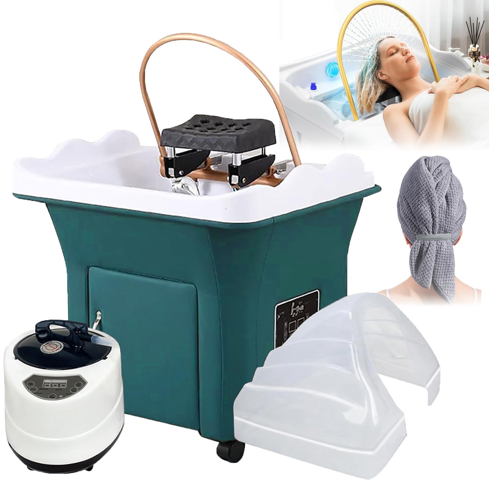 Head Spa Equipment Sink Portable, Thermostatic Japanese Head Spa with Fumigation & Light Therapy, Water Circulation Head Spa for Hair Stylists Spa Machine,Green
