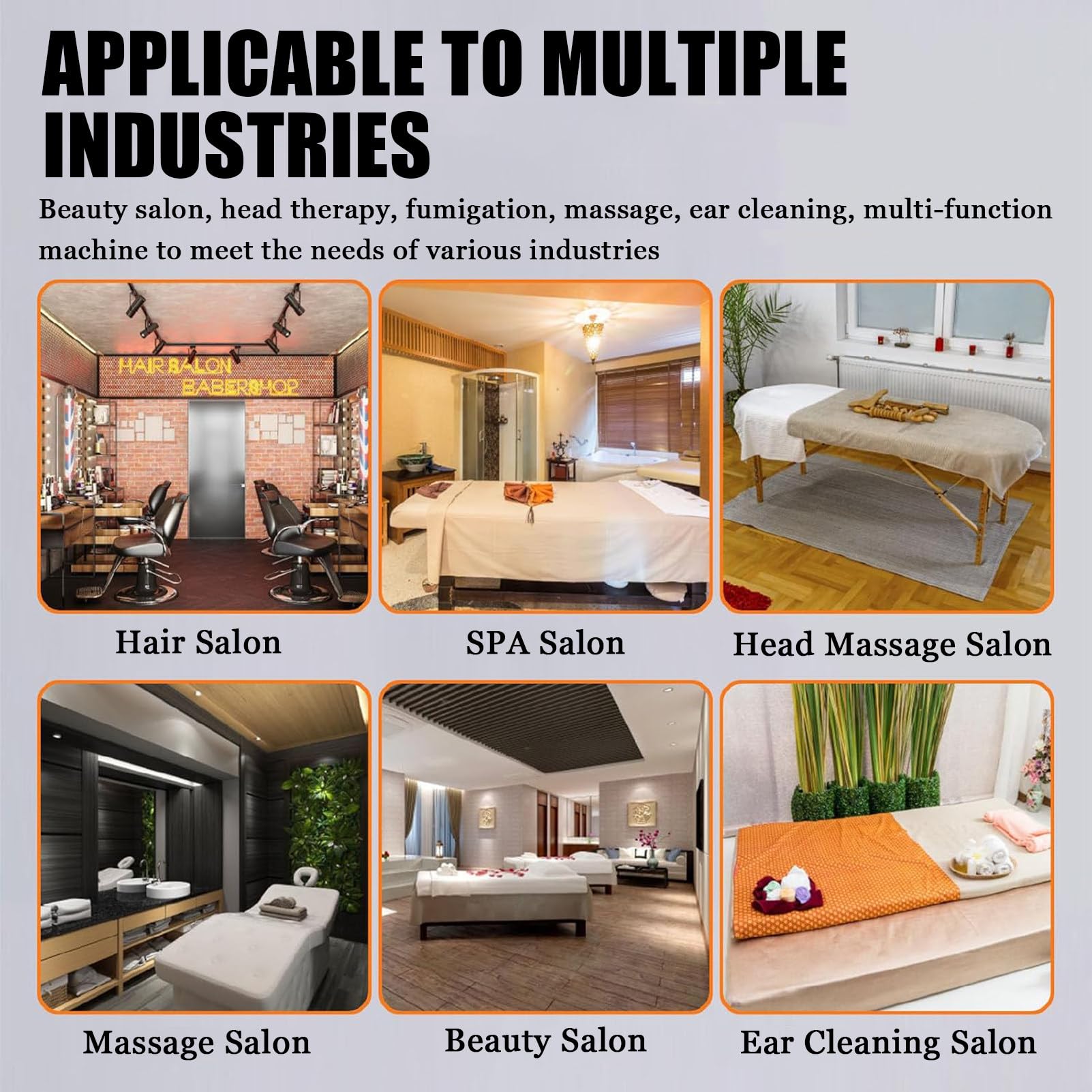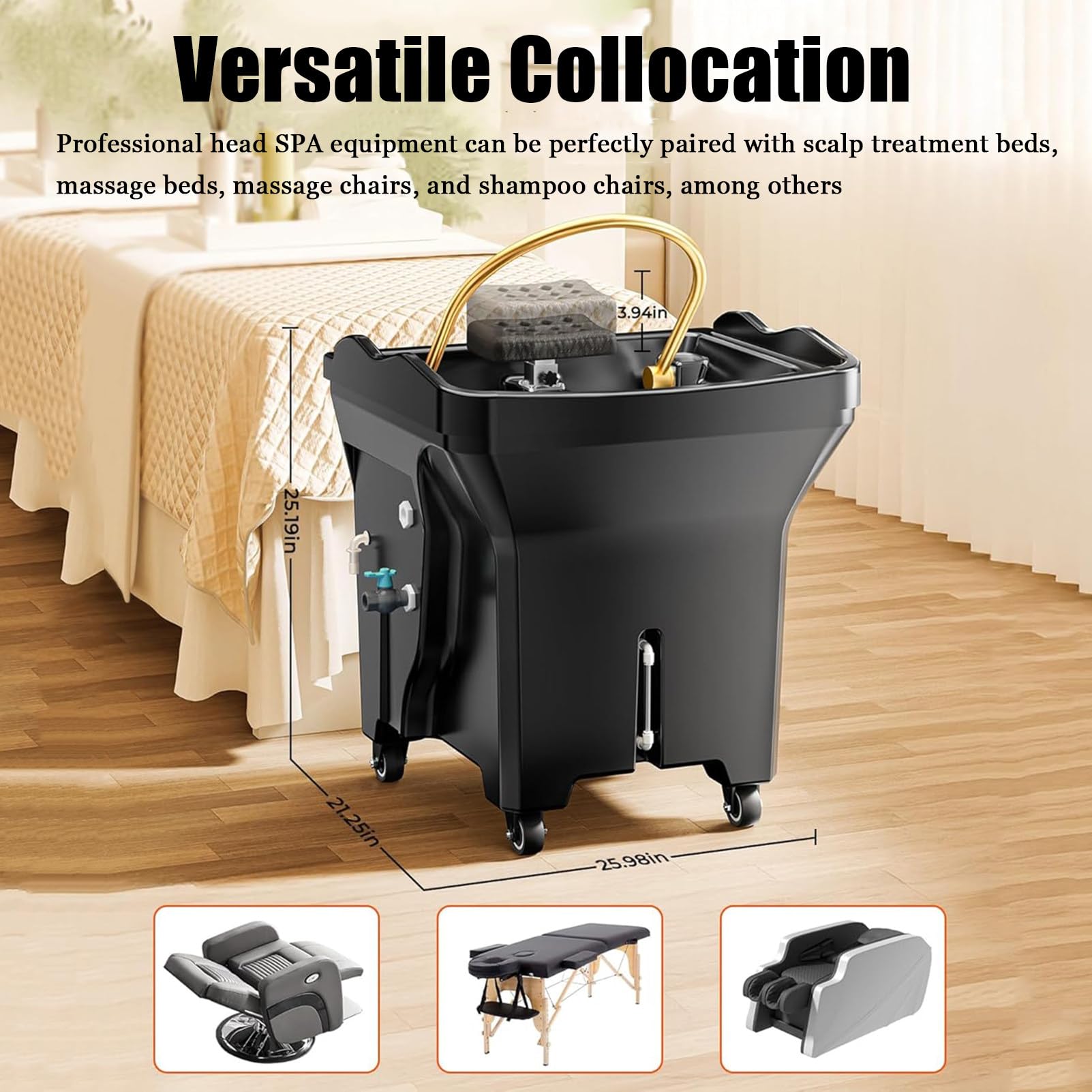 - 【APPLICABLE OCCASIONS】● Japanese head spa machine is a professional spa equipment that integrates shampooing, spa, steam therapy, light therapy, and hair care. It fits beauty salons, massage parlors, health spas, etc. It is also more compatible with most shampooing chairs, beauty chairs, head care beds, and massage beds. It has four fixable universal wheels at the bottom, which can be easily moved to the desired position.