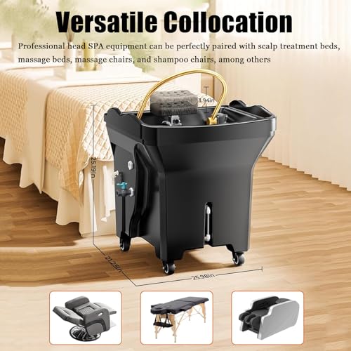 • 【APPLICABLE OCCASIONS】● Japanese head spa machine is a professional spa equipment that integrates shampooing, spa, steam therapy, light therapy, and hair care. It fits beauty salons, massage parlors, health spas, etc. It is also more compatible with most shampooing chairs, beauty chairs, head care beds, and massage beds. It has four fixable universal wheels at the bottom, which can be easily moved to the desired position.