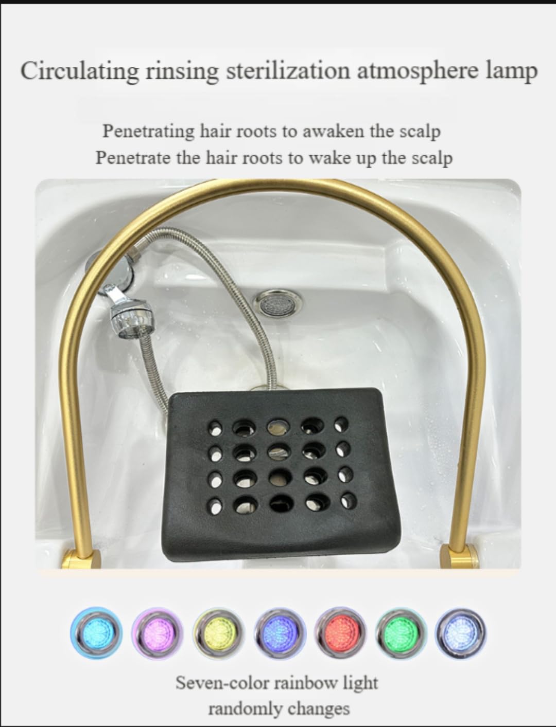 - 【Smart Water Circulation Scalp Care】The device’s water circulation system maintains a constant flow of water in the head basin, accurately directing it to the scalp via a golden ring. The flowing water offers a gentle scalp massage and can be enhanced with essential oils or specialized scalp care solutions.