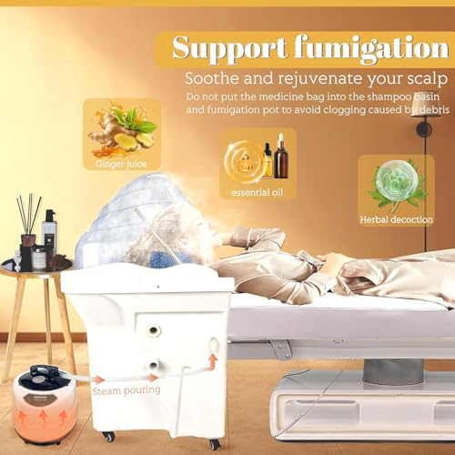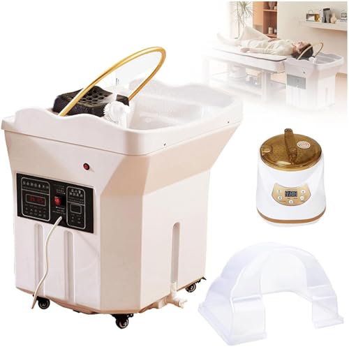 Japanese Head Spa Equipment Sink Portable with 60L Water Tank, Salon Shampoo Bowl,Water Circulation Shampoo Basin,Shower Head & Hot/Cold Switch,Set2-White