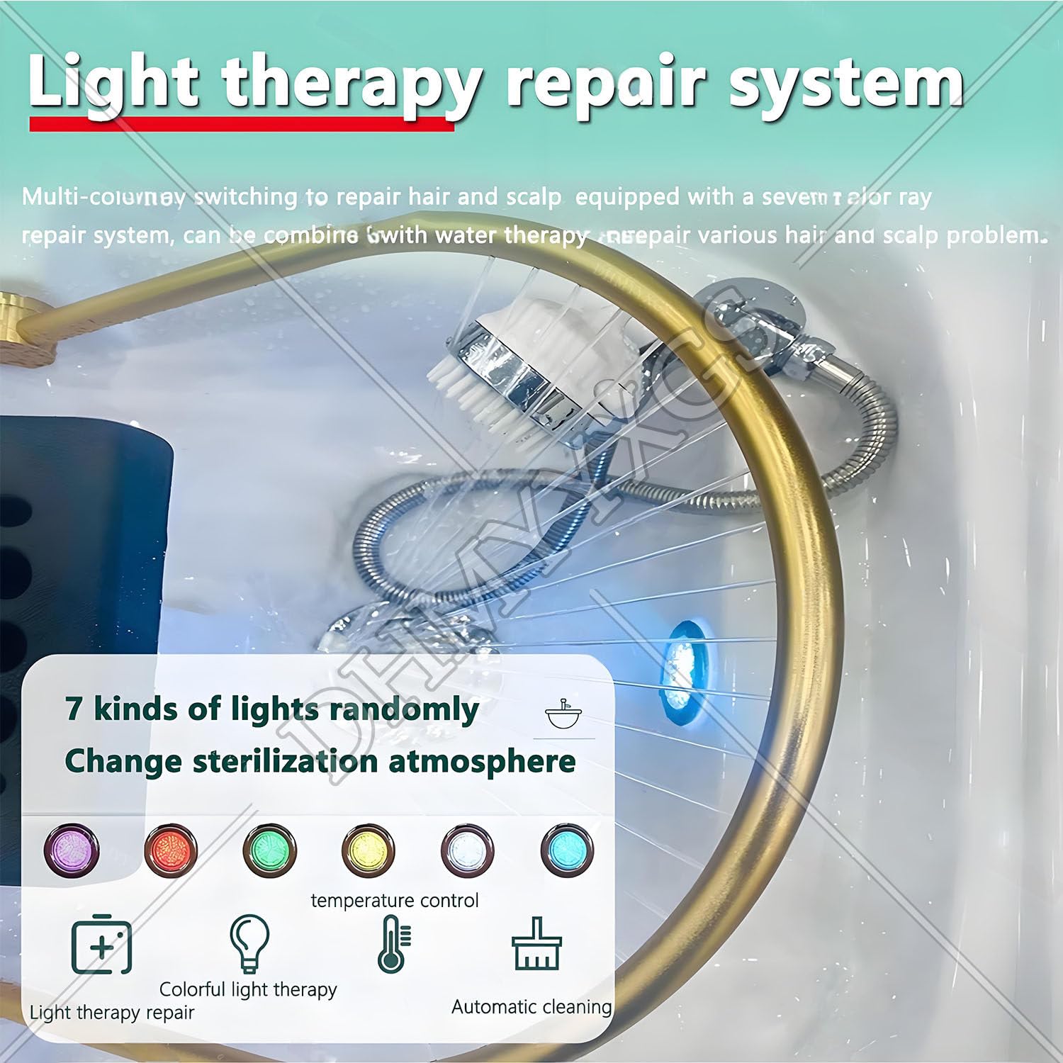 - ▶【Occasions applicables】: Machine de spa de la tête est une combinaison de shampoing, de spa, de vapeur, de fumigation, de luminothérapie, de soins capillaires et de la plupart des chaises de shampoing, des chaises de beauté, des lits de massage et des lits de soins de la tête. Il est très approprié pour les salons de beauté, les salons de massage, les salons de coiffure, les spas de santé, etc.