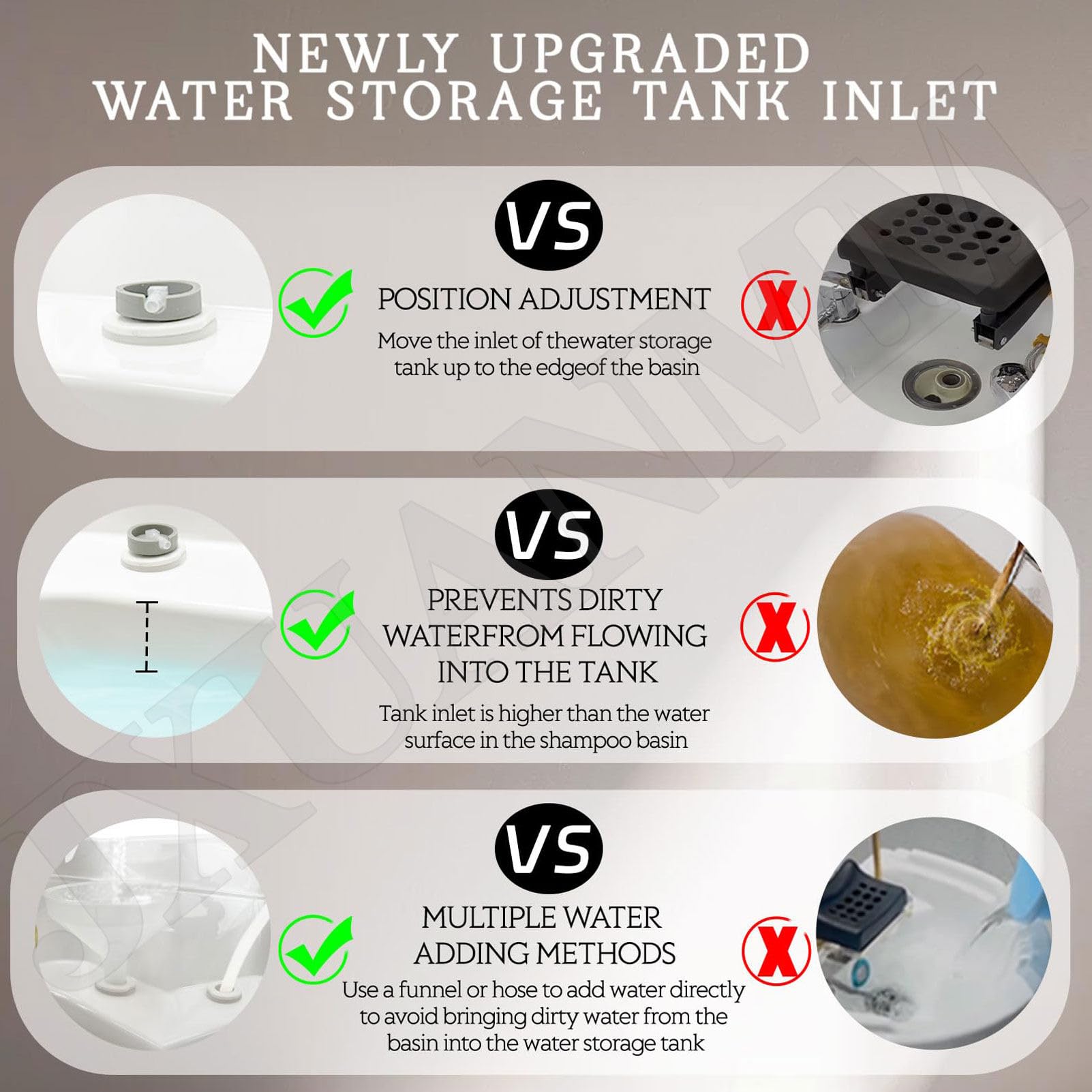 - 【Portable】: Le bol de shampoing JXUANMM Head Spa est équipé de quatre roues universelles fixables en bas, qui peuvent être facilement déplacées à la position souhaitée. Il est également plus compatible avec la plupart des chaises de shampoing, chaises de beauté, lits de soins de la tête et tables de massage.