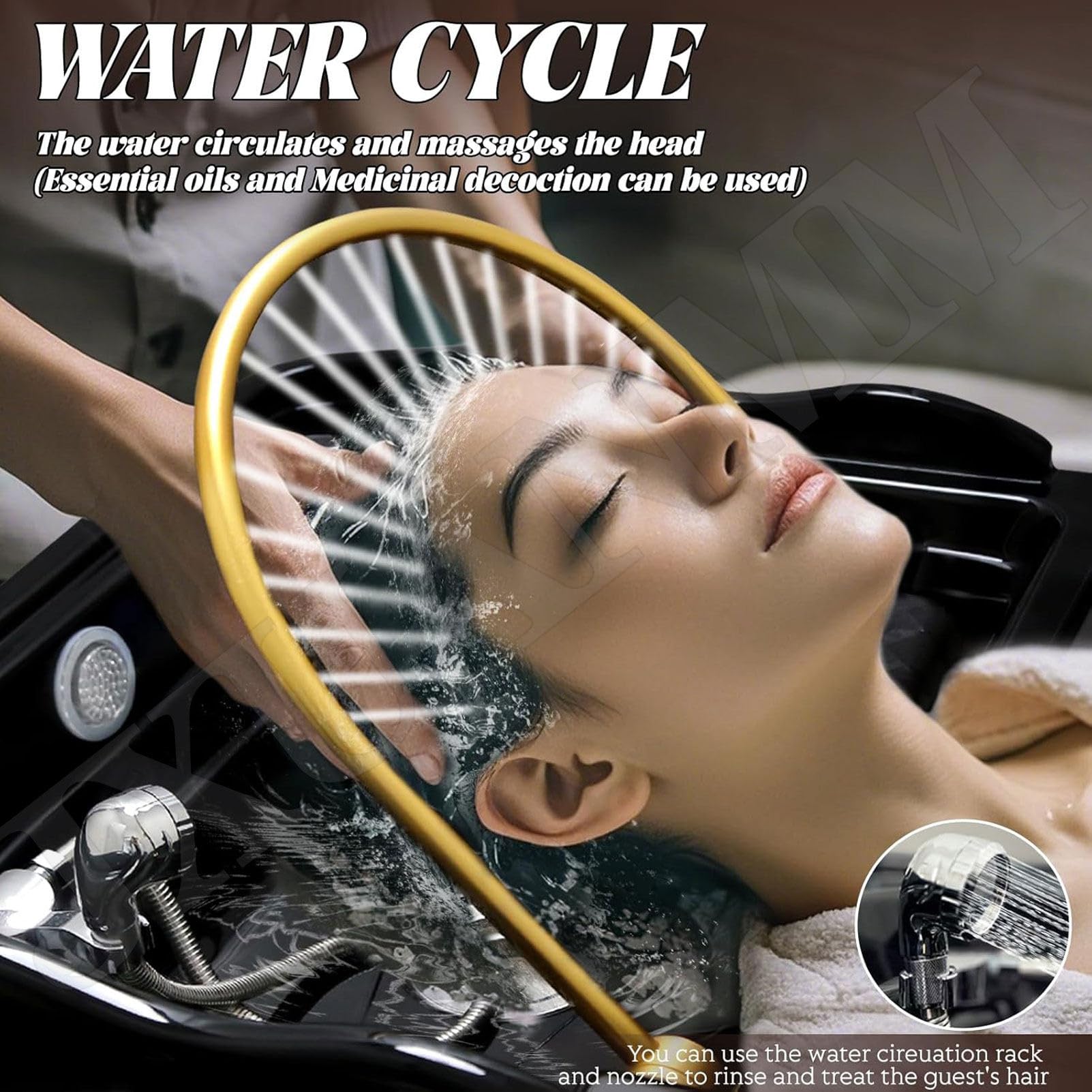 Tête de Lavage Amovible Salon de beauté Spa Thérapie Bassin de shampoing Circulation d’eau Bol de shampoing Lit de barbier Set1-Black