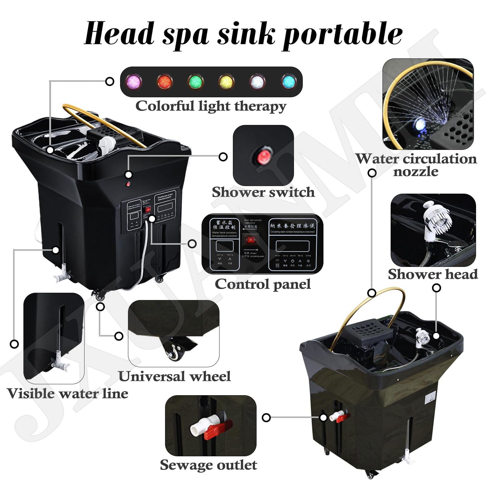 - 【Portable】: Le bol de shampoing JXUANMM Head Spa est équipé de quatre roues universelles fixables en bas, qui peuvent être facilement déplacées à la position souhaitée. Il est également plus compatible avec la plupart des chaises de shampoing, chaises de beauté, lits de soins de la tête et tables de massage.