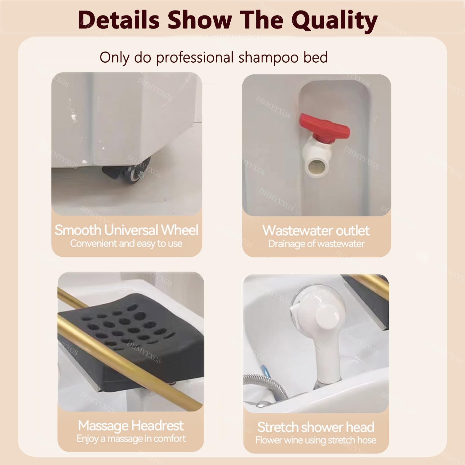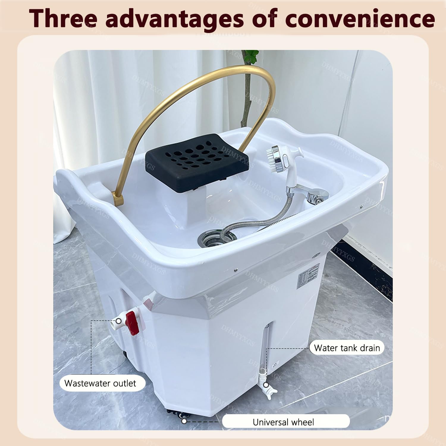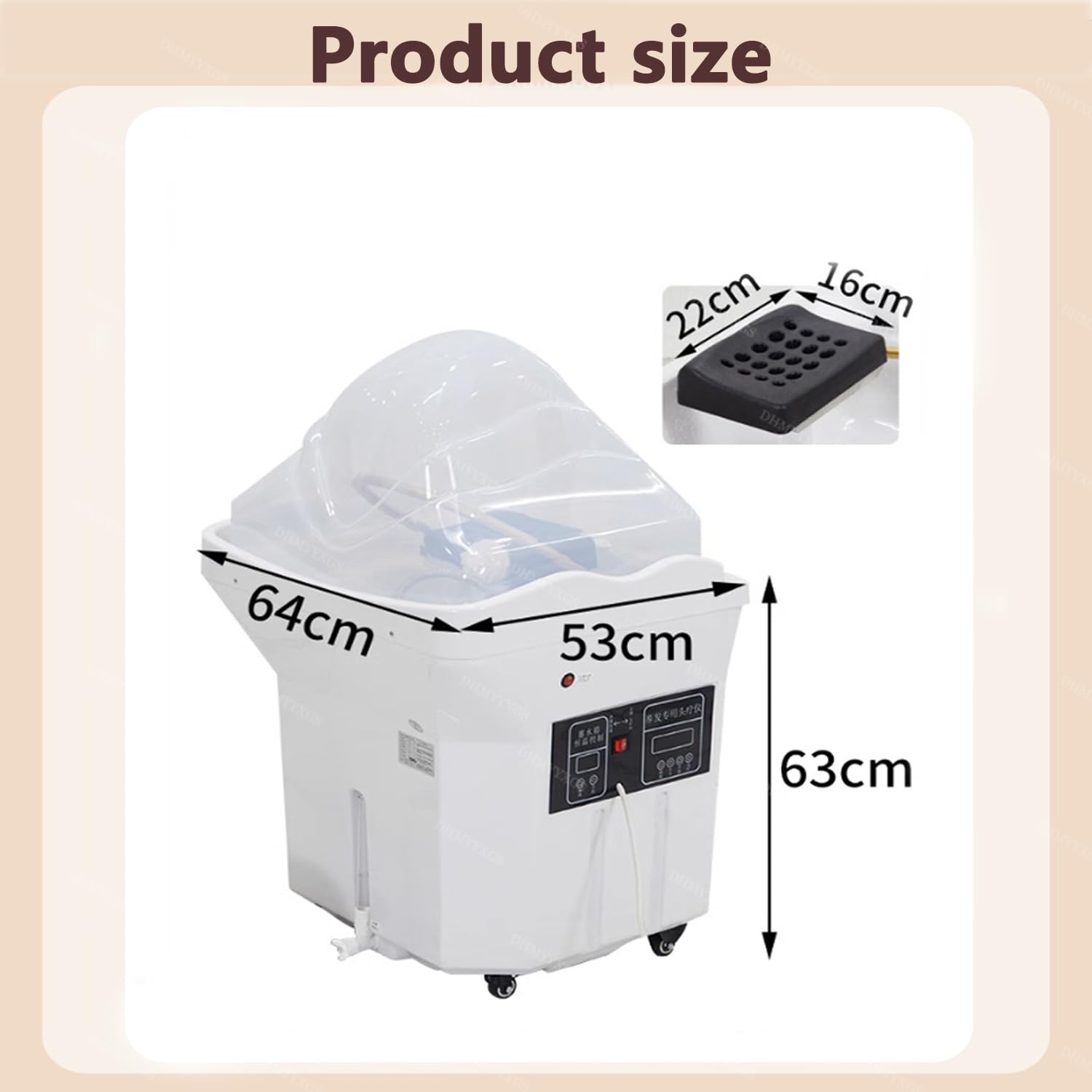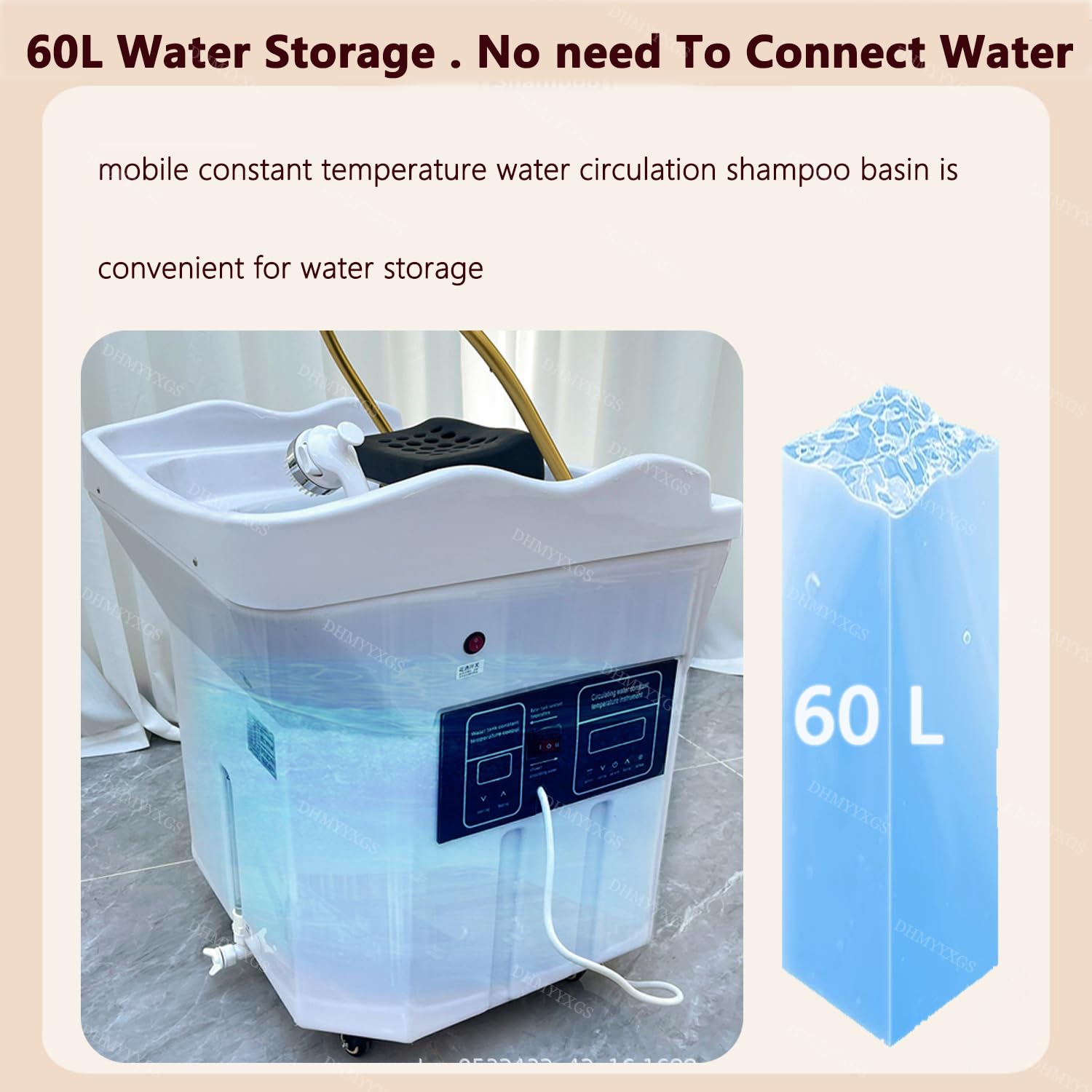 - ▶【Four-wheel self-storage spa】: Head spa shampooing equipment is equipped with a 60L water storage tank, and no water source connection is required. The bottom of the head spa bowl is equipped with four fixed universal wheels, which can be easily moved to the desired position, and is more compatible with most shampoo chairs, beauty chairs, head care beds and massage beds.
