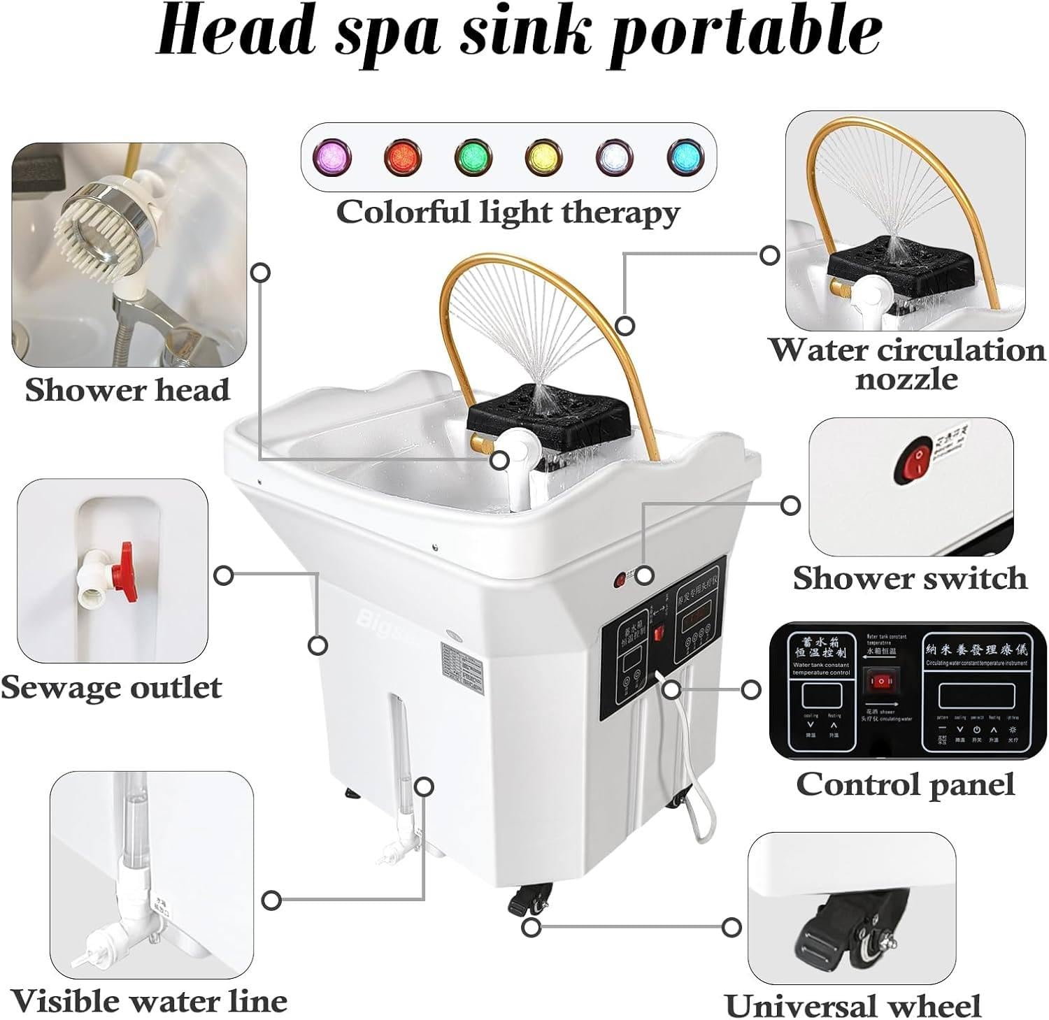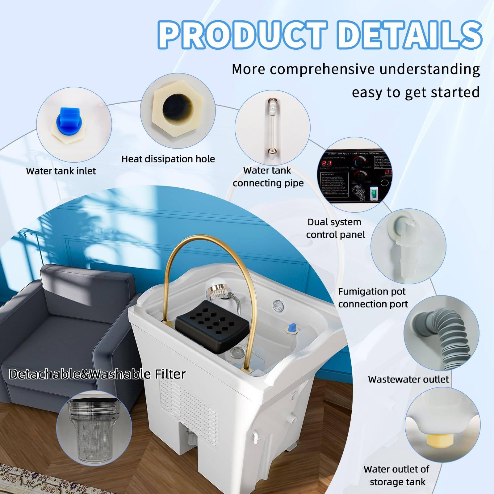 Head Care Solution unique – Équipement de spa pour la tête, spa japonais pour la tête, système de double contrôle de circulation de l’eau, grand réservoir d’eau de 60 L, fumigation