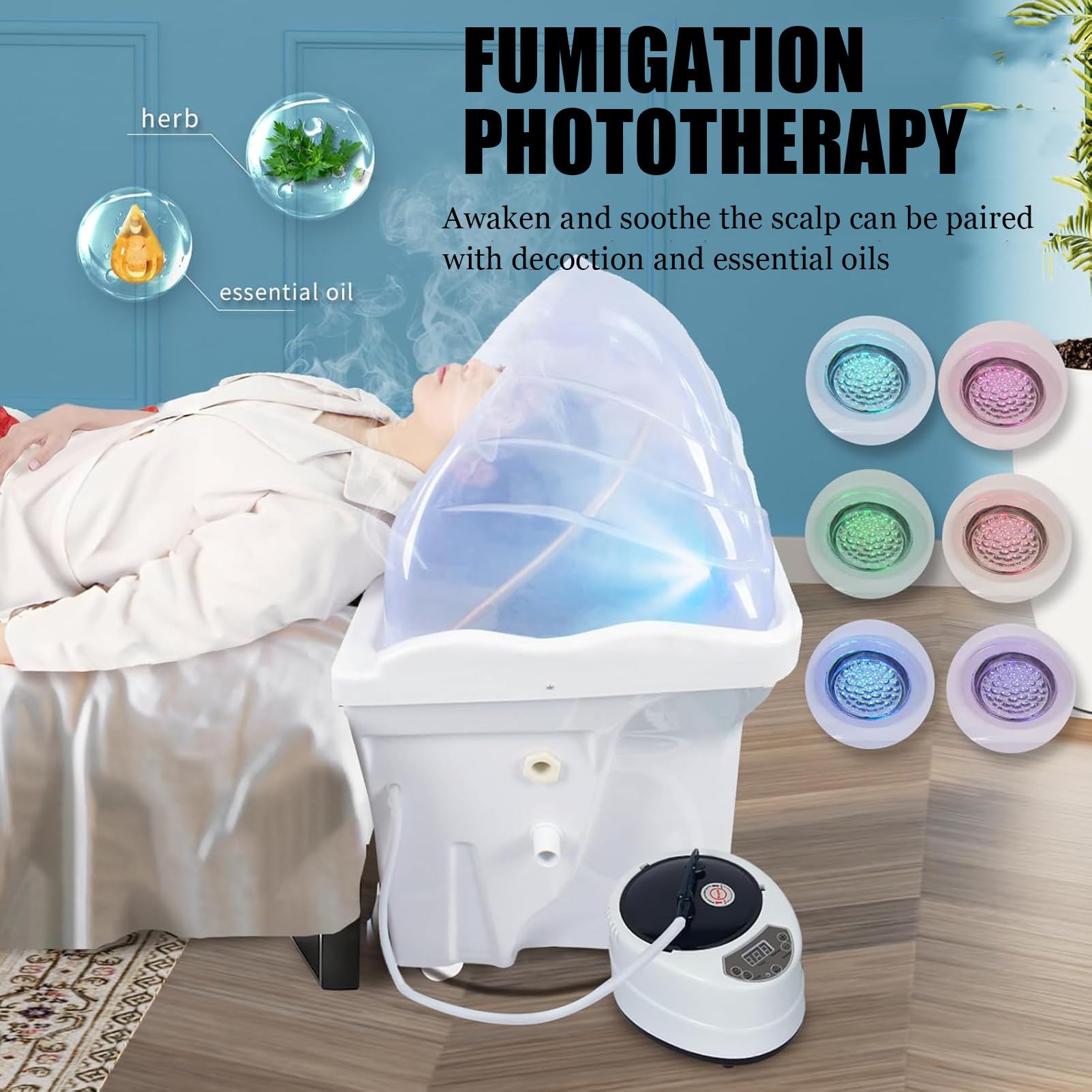 - 【EXPÉRIENCE DE FUMIGATION AROMATIQUE】● Vous pouvez ajouter une séance de fumigation pendant le shampoing. Utilisez les accessoires de fumigation inclus avec des huiles essentielles et des herbes pour créer une expérience spa apaisante. L’essence nourrit le cuir chevelu en profondeur, le rendant plus confortable et améliorant sa santé. Le bac à shampoing à circulation d’eau peut également éliminer efficacement la fatigue et favoriser la circulation sanguine.