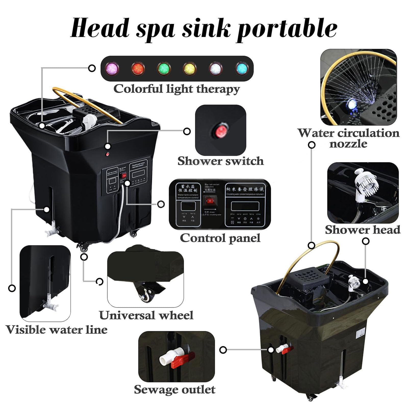 ylpddmm Bol de shampoing de Salon Équipement de Spa de tête Japonais avec réservoir de Stockage d’eau,équipement de Spa de tête thermostatique Bassin de shampoing à Circulation d’eau,Black-Style1