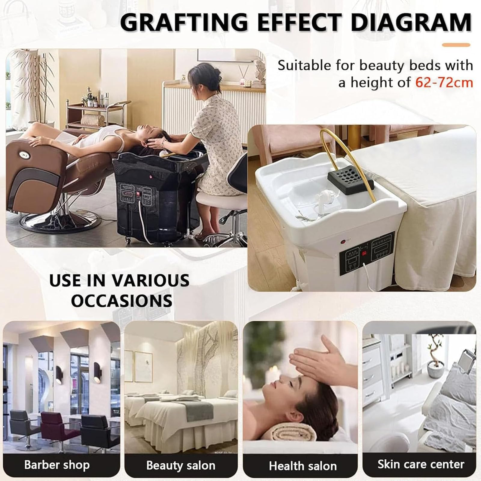- ✔【Portable】 Le bac à shampoing du spa pour la tête est équipé de quatre roulettes universelles fixes, faciles à déplacer. Il est également compatible avec la plupart des shampoings, fauteuils de beauté, lits de soins pour la tête et tables de massage.