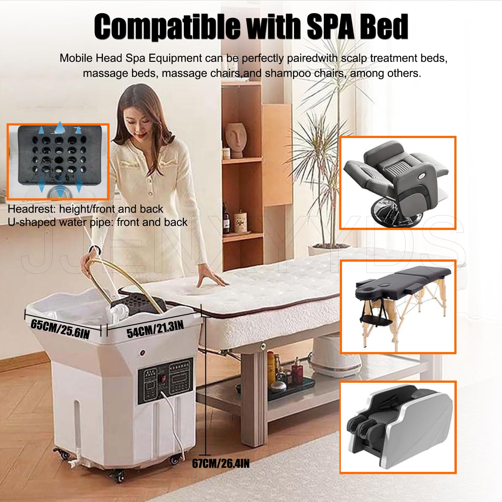 - 【Conception réglable et compatibilité avec les lits de spa】L’équipement Head Spa est doté d’un appui-tête et d’un tuyau d’eau réglables pour s’adapter aux lits d’esthétique et aux fauteuils de coiffure (hauteur 65-75 cm). Un réglage facile (appui-tête :hauteur/avant/arrière ; tuyau : avant/arrière) permet un alignement parfait de la sortie de la cascade pour un flux et un effet de massage optimisés. Idéal pour les salons, les spas et les centres de bien-être