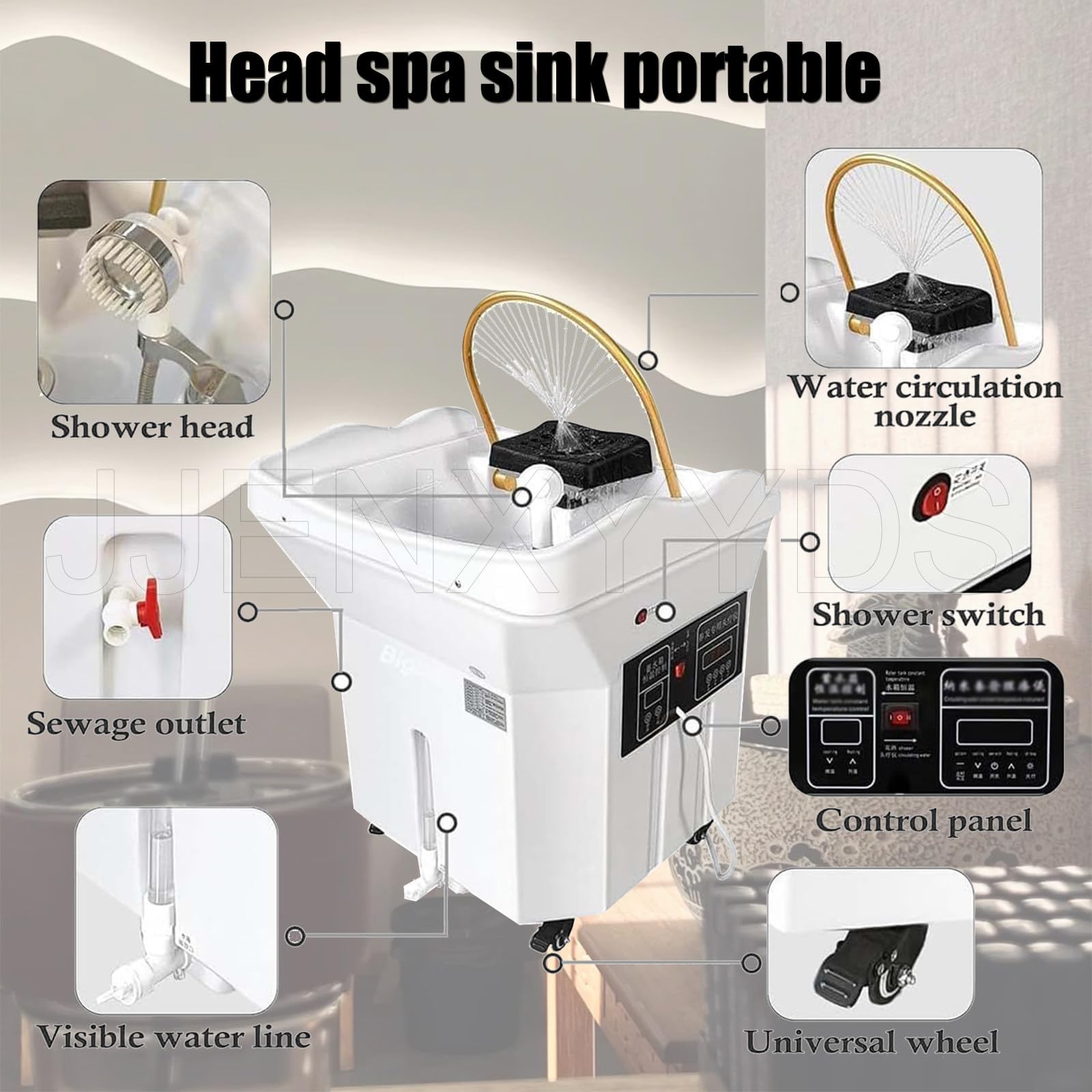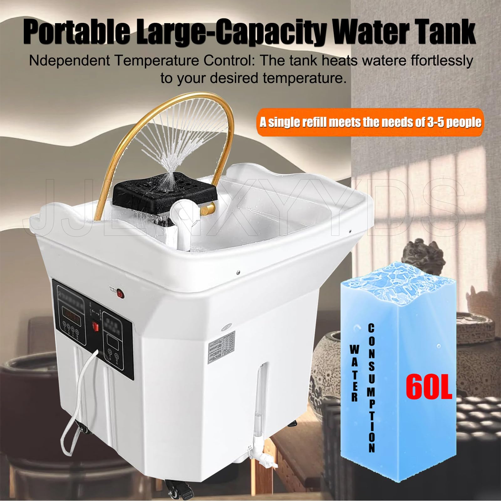 - 【Réservoir d’eau portable de grande capacité : Appareil de spa mobile avec réservoir de 60 L (pour 3 à 5 personnes aux cheveux mi-longs/longs), sans tuyauterie externe. Un niveau d’eau empêche les débordements et permet de contrôler facilement le niveau d’eau. Les roulettes universelles inférieures tournent et se bloquent en douceur, s’adaptant à différents types de meubles pour une mobilité optimale