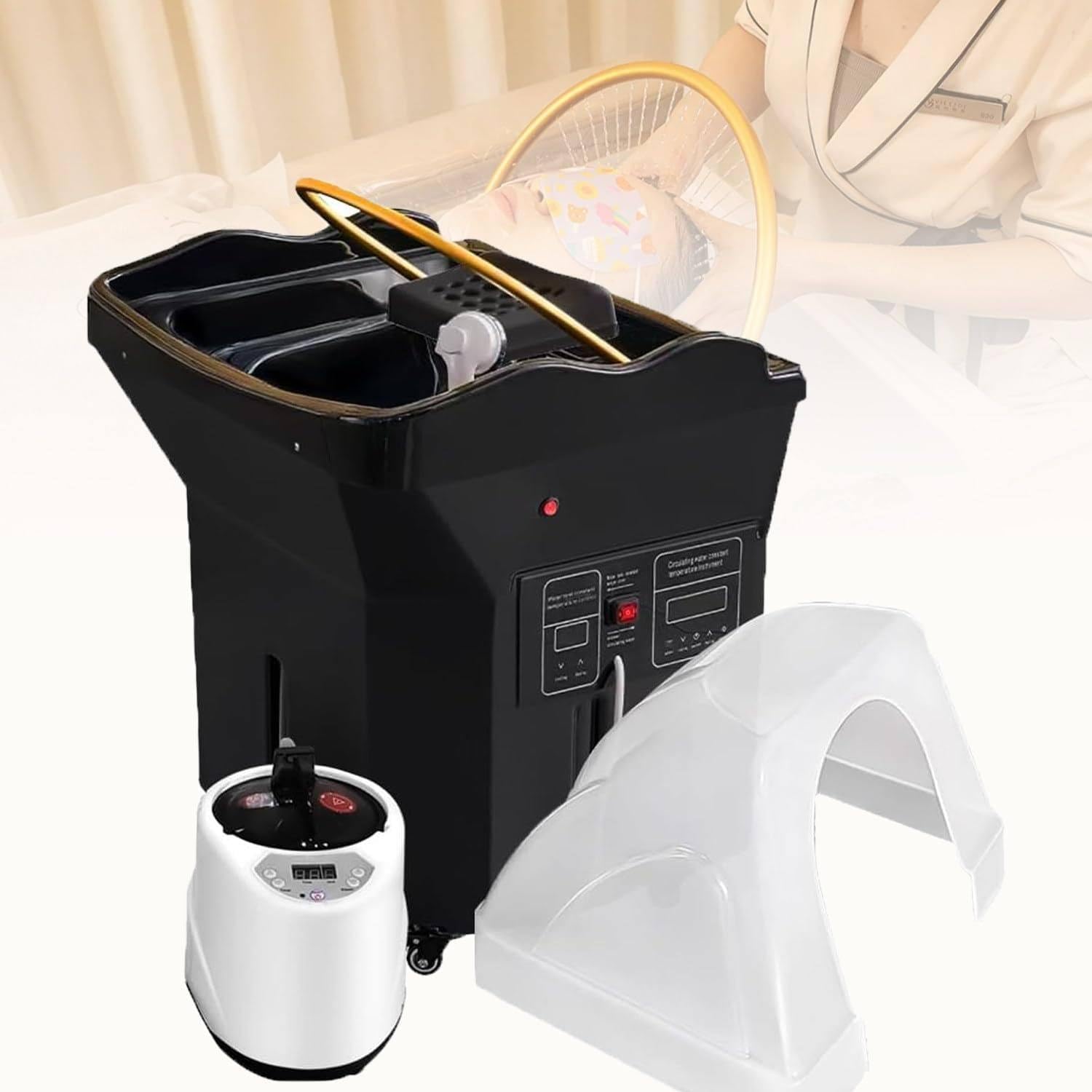 - ✅【RÉSERVOIR D’EAU DE GRANDE CAPACITÉ DE 60 L】: ultra-large (convient aux cheveux mi-longs de 3 à 5 personnes). Aucun tuyau externe n’est requis : il suffit de le remplir d’eau et de l’utiliser. Équipement de spa pour la tête équipé d’un tube de contrôle du niveau d’eau pour éviter les débordements, pour un fonctionnement sûr et sans souci. 4 jeux de roulettes flexibles en bas, faciles à déplacer et équipés d’un dispositif de fixation. Dispositif de circulation d’eau amovible, facile à nettoyer.