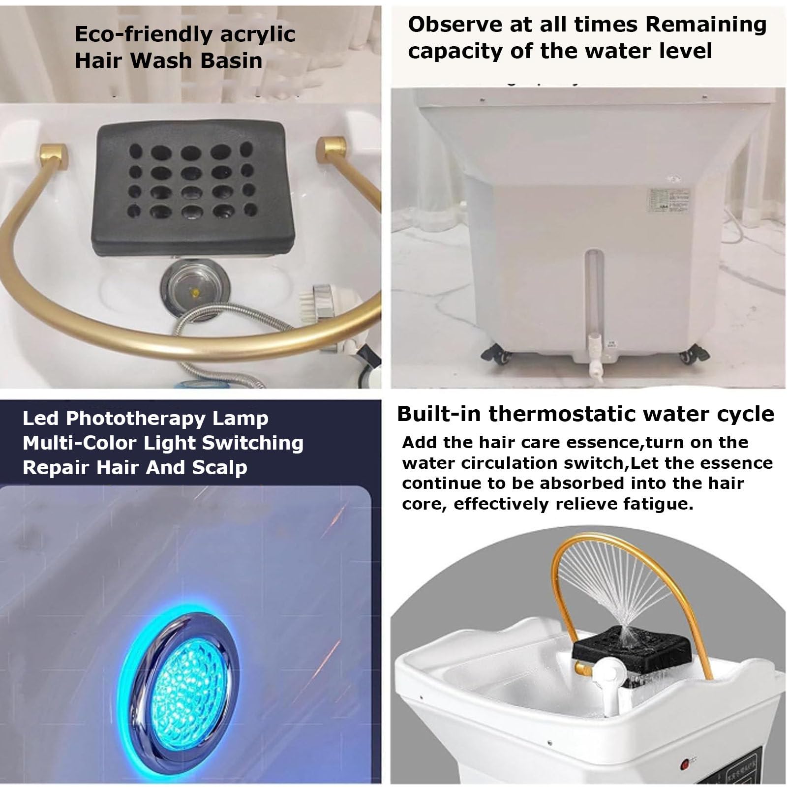 - ❤【Machine de thérapie de la tête saine】Bassin de shampooing spa amovible conçu avec une lampe de luminothérapie LED, il peut aider à réparer les cheveux et le cuir chevelu, améliorer l’équilibre de la flore du cuir chevelu, l’équilibre de l’huile et l’équilibre métabolique, aider à améliorer l’état du cuir chevelu et améliorer la santé des cheveux