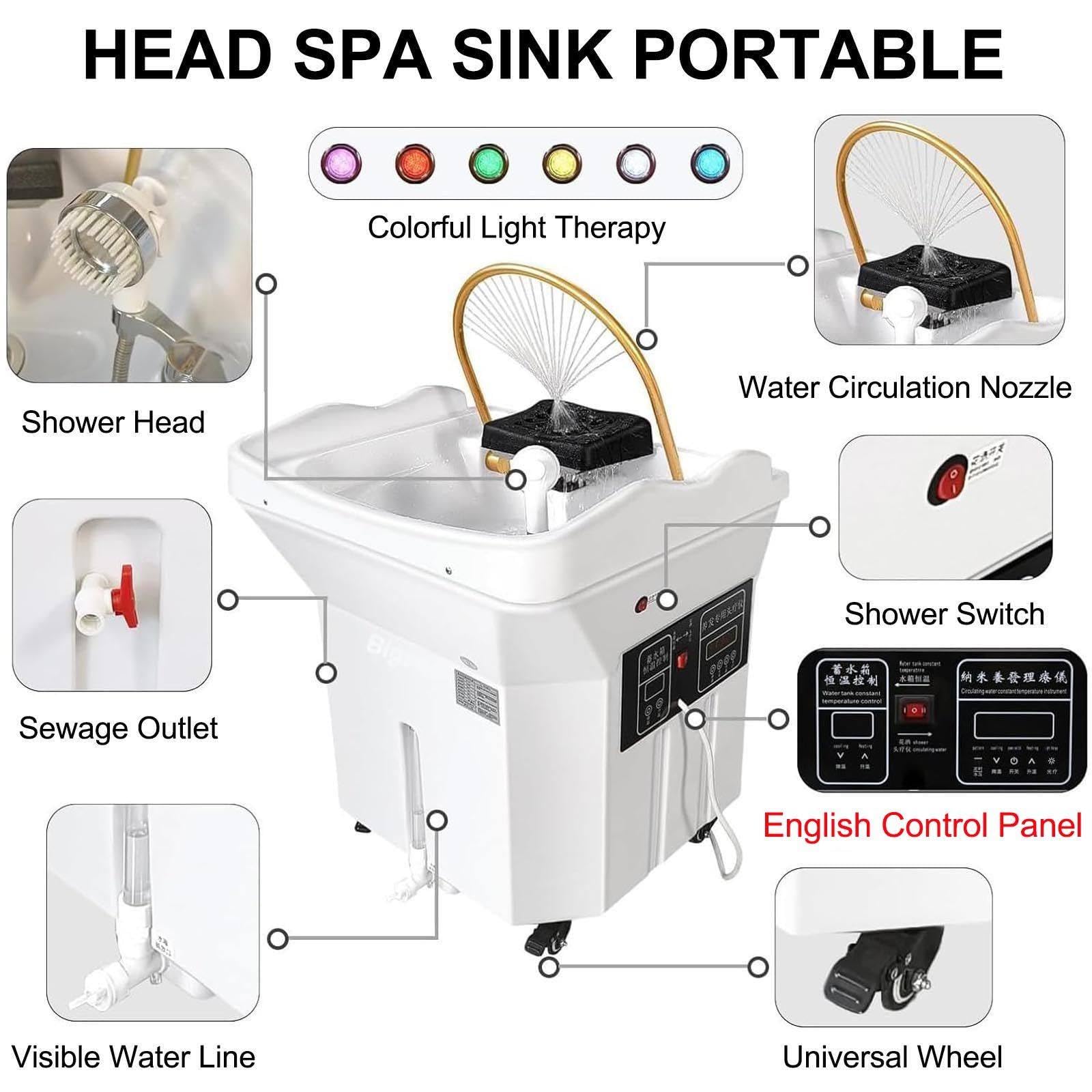 - 【DOUBLE CHAUFFAGE ET CONTRÔLE DE LA TEMPÉRATURE (CHAUFFAGE RAPIDE EN 15 MIN)】 Lave-cheveux. Spas de luxe et salons à forte fréquentation Le chauffage et la circulation simultanés portent l’eau à 40-42 °C en 15 minutes. Le maintien d’une température précise (30-55 °C) garantit à vos clients un soin confortable et relaxant, sans délai inutile. Ne faites plus attendre vos clients.