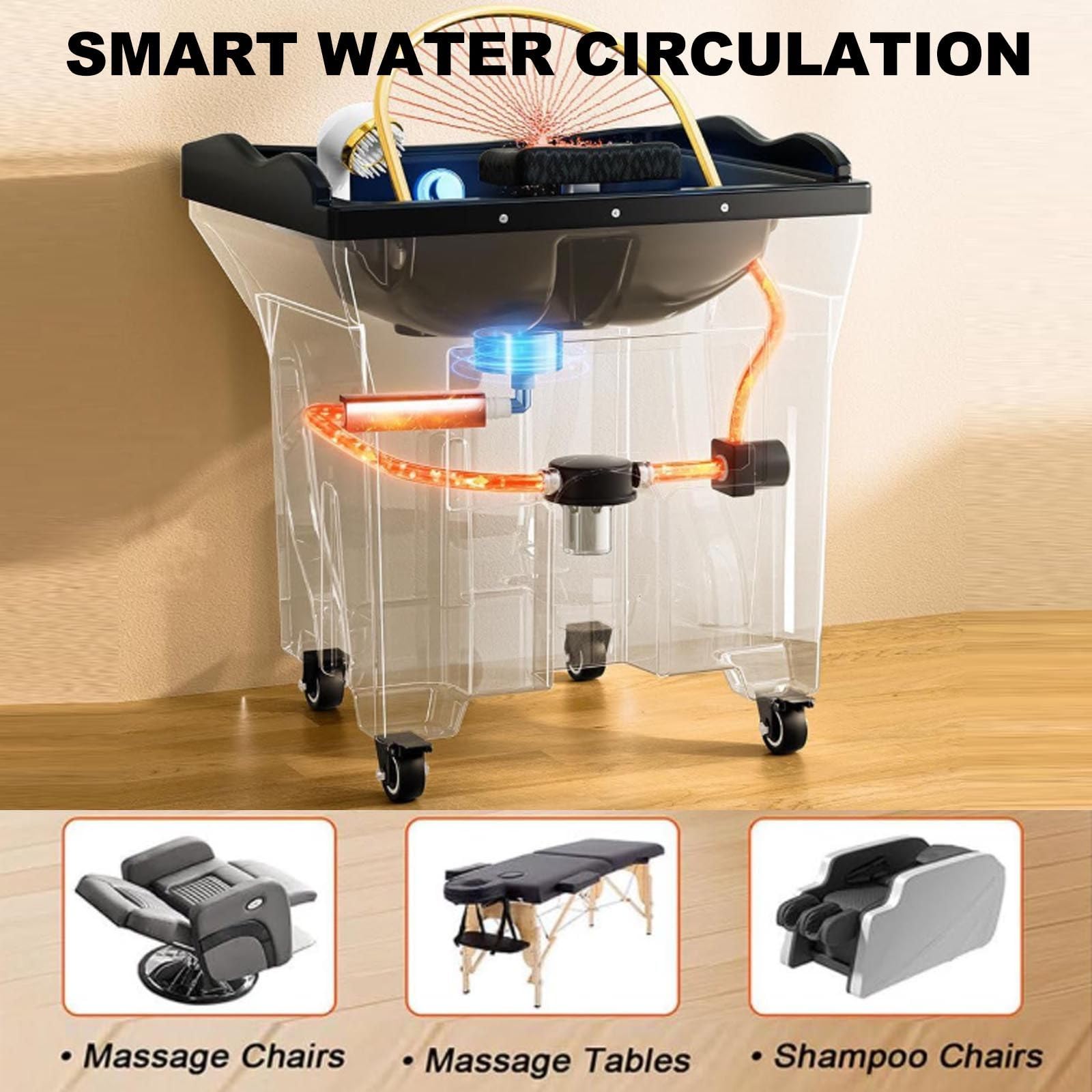 - 【DOUBLE CHAUFFAGE ET CONTRÔLE DE LA TEMPÉRATURE (CHAUFFAGE RAPIDE EN 15 MIN)】 Lave-cheveux. Spas de luxe et salons à forte fréquentation Le chauffage et la circulation simultanés portent l’eau à 40-42 °C en 15 minutes. Le maintien d’une température précise (30-55 °C) garantit à vos clients un soin confortable et relaxant, sans délai inutile. Ne faites plus attendre vos clients.