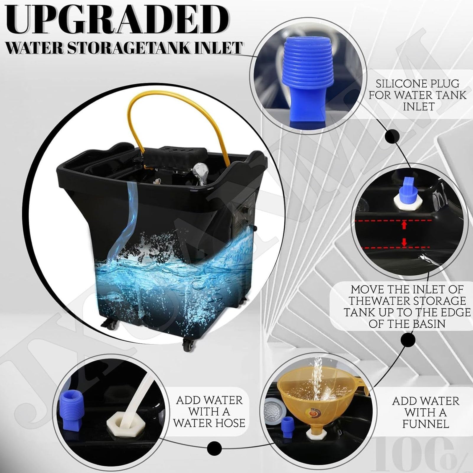- 【Équipement de spa japonais for la tête】 : Aucune alimentation en eau externe n’est requise. Le bac à shampoing est équipé d’un réservoir d’eau de 60 litres, dont la température peut être réglée entre 30 °C et 50 °C via le panneau de commande. Une fois le bain terminé, vous pouvez vous laver directement avec le pommeau de douche; l’eau du réservoir est évacuée par le réservoir. Le fond est équipé de roulettes universelles, faciles à déplacer et à arrêter à tout moment.