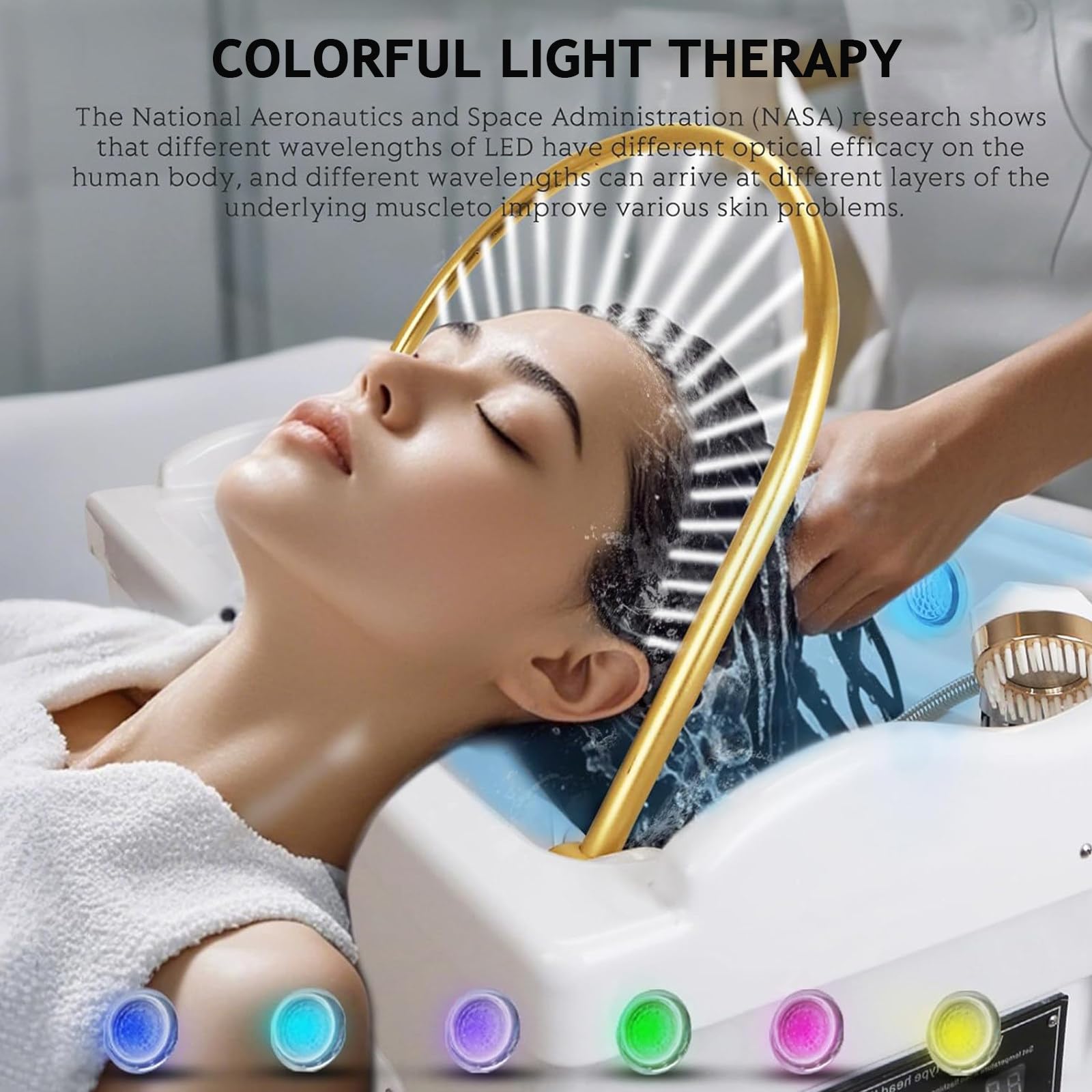 - 【Occasions applicables】La machine de spa pour la tête est un équipement de spa professionnel qui intègre le shampoing, le spa, la thérapie à la vapeur, la luminothérapie et les soins capillaires. Très approprié pour les salons de beauté, les salons de massage, les spas de santé, etc.