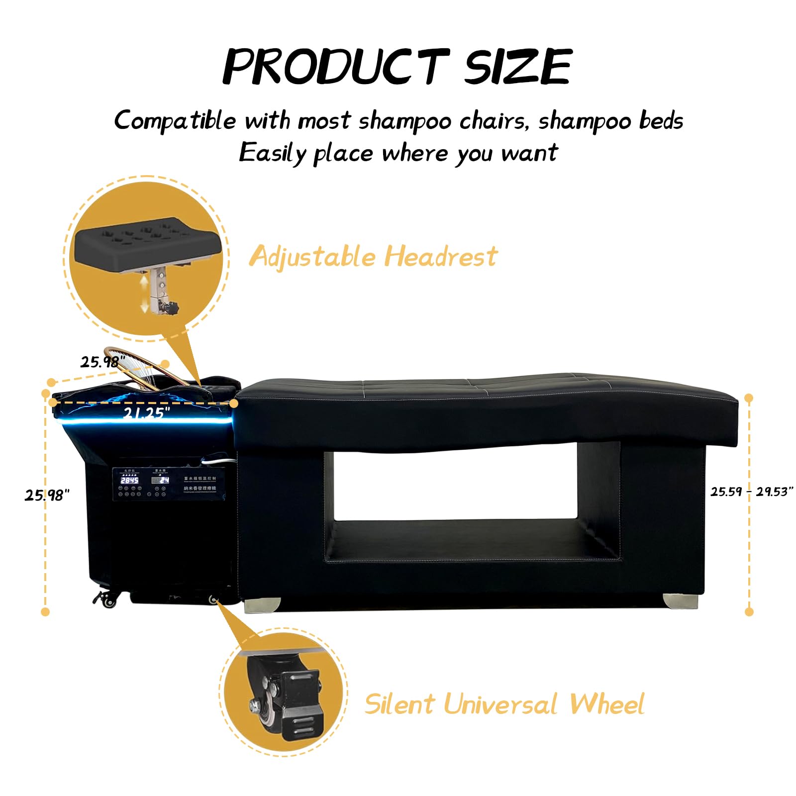 - 4 Portable: l’appareil de spa de tête japonaise est équipé de quatre roues universelles fixes sur le fond. Il peut être facilement placé où vous pensez. Compatible avec la plupart des chaises de shampooing, chaises de beauté, lits de shampooing, lits de massage, etc.
