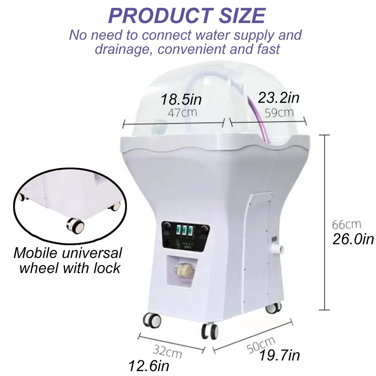 - 【PORTABLE SANS RÉSERVOIR D’EAU】Ce spa de tête sans réservoir se connecte directement à une source d’eau externe, offrant une portabilité inégalée pour les salons. Ses roues silencieuses et verrouillables facilitent son déplacement entre les postes sans nuisances sonores.