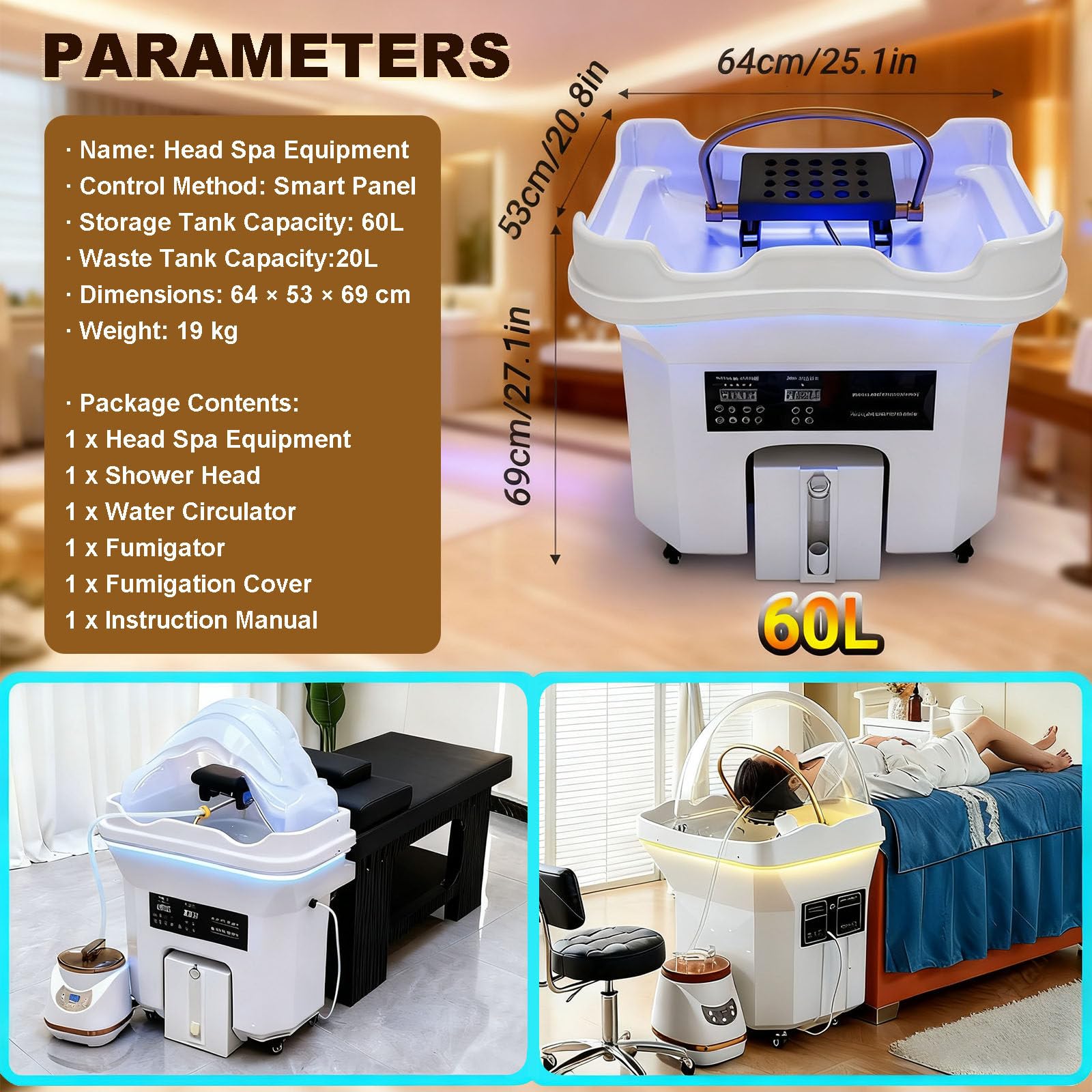 - ❤️ [BAC DE SPA POUR LA TÊTE TOUT-EN-UN] Cet équipement de spa pour la tête amélioré intègre un réservoir de stockage de 60 L et un réservoir d’eaux usées de 20 L, fonctionnant de manière indépendante sans raccordement à des conduites d’eau externes. Indicateur de niveau et réservoir amovible pour un entretien facile. Contrôlez tout sans effort via le panneau intelligent intégré pour une configuration en un seul toucher.