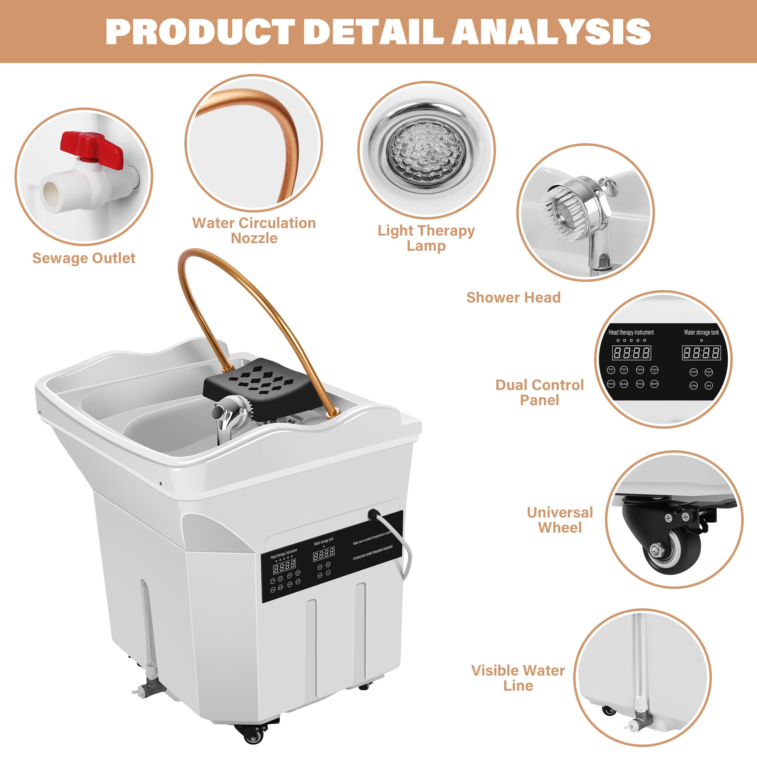 - Ultra-Portable Design:The head spa is equipped with four fixed universal wheels at the bottom.Move effortlessly between stations; perfect for salons, spas, or mobile stylists.Adjustable Headrest – Fits most shampoo chairs & beauty beds for maximum client comfort.